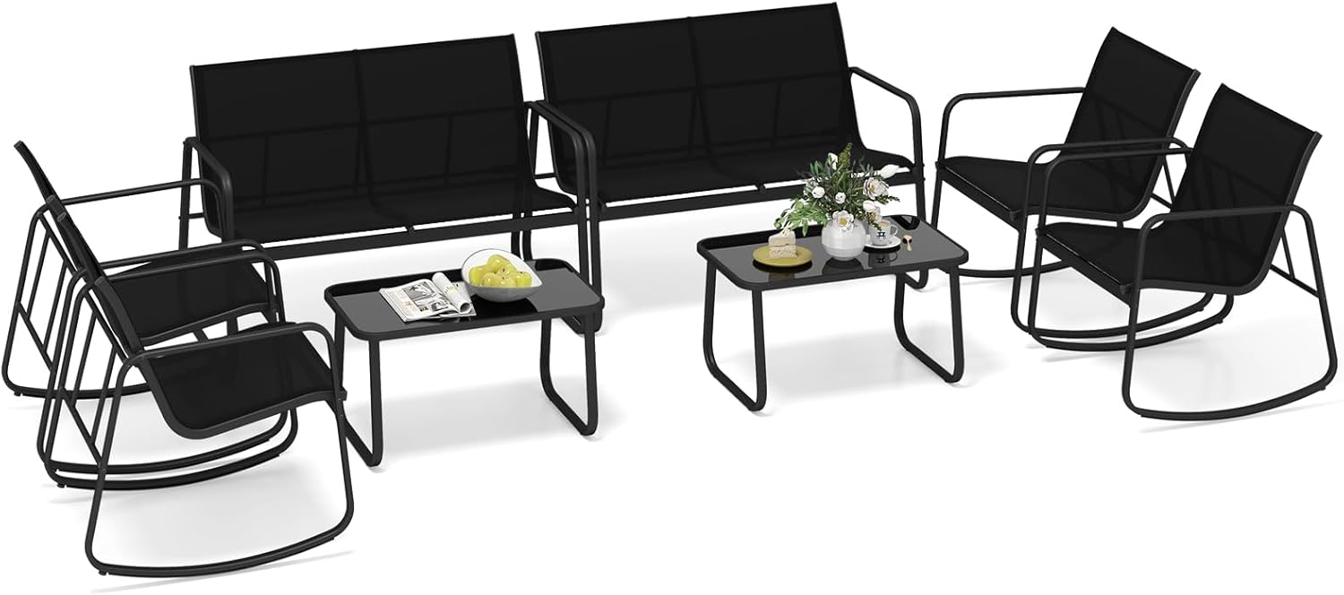 Tangkula Outdoor Rocking Bistro Set with Rocking Chairs Loveseat & Glass Coffee Table