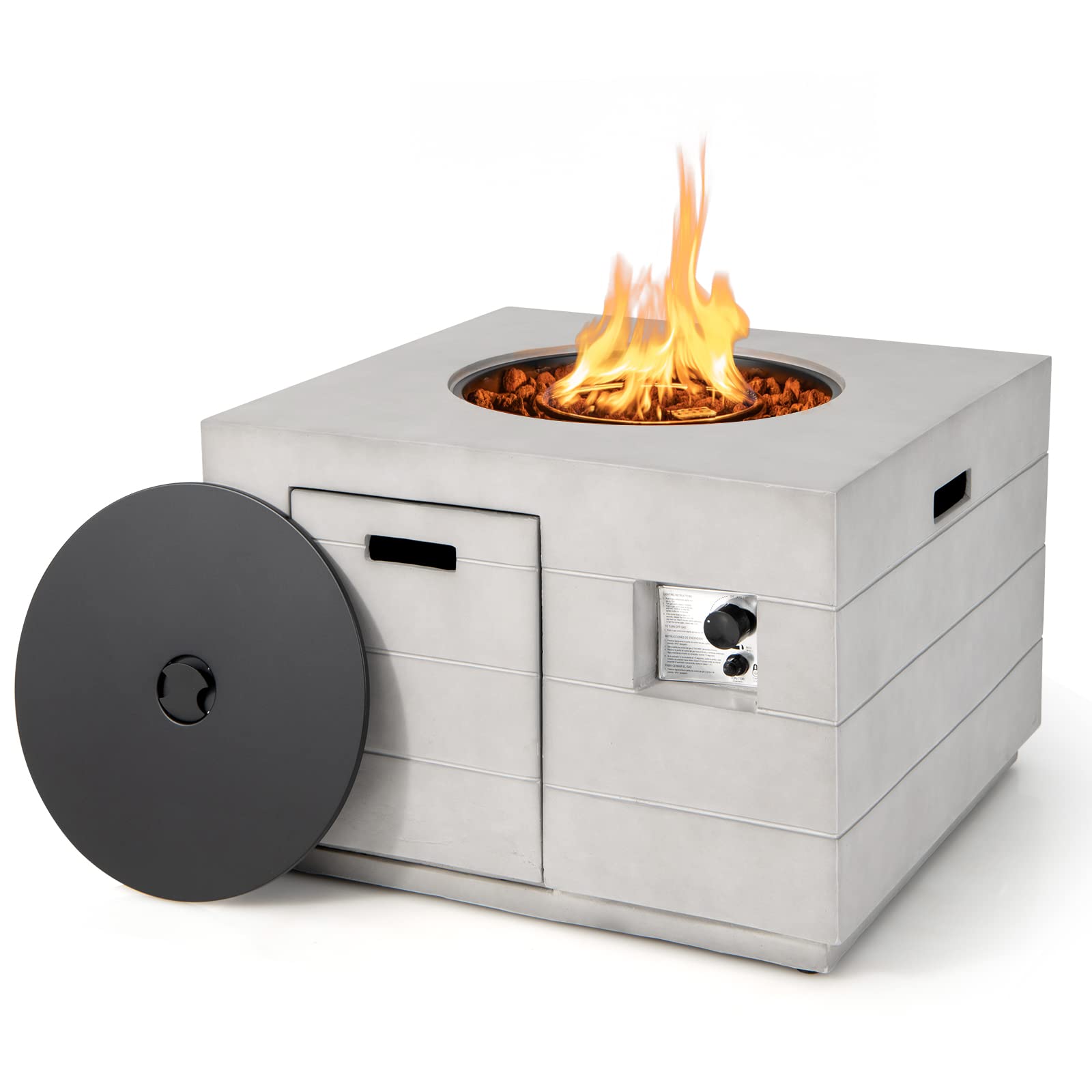 Tangkula 35 Inch Concrete Propane Gas Fire Pit Table, Patiojoy Square Outdoor Propane Fire Table with Protective Cover Lava Rocks & Metal Lid