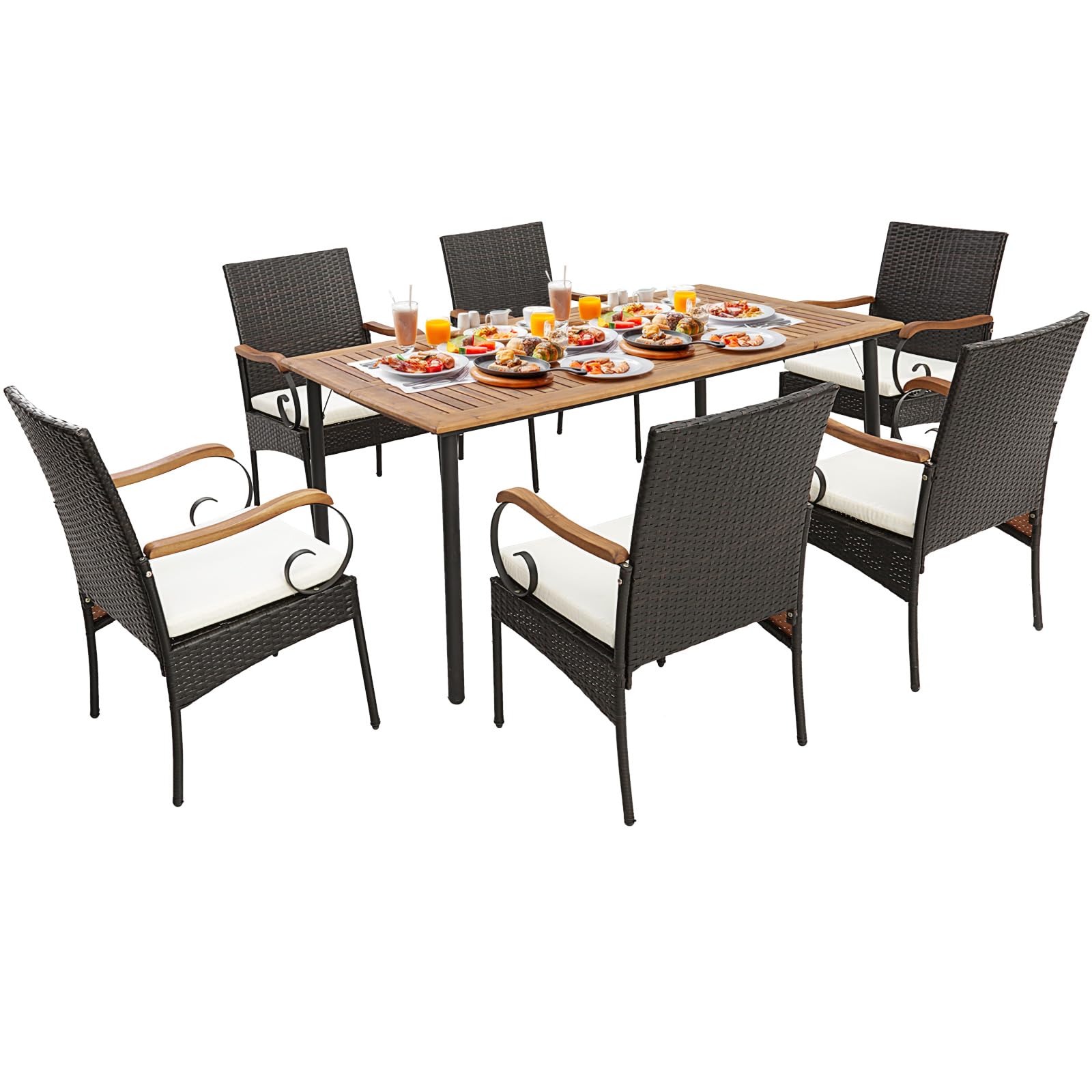 Tangkula 7 or 9 Piece Outdoor Dining Set, Patio Wicker Furniture Set with Acacia Wood Table Top w/Umbrella Hole