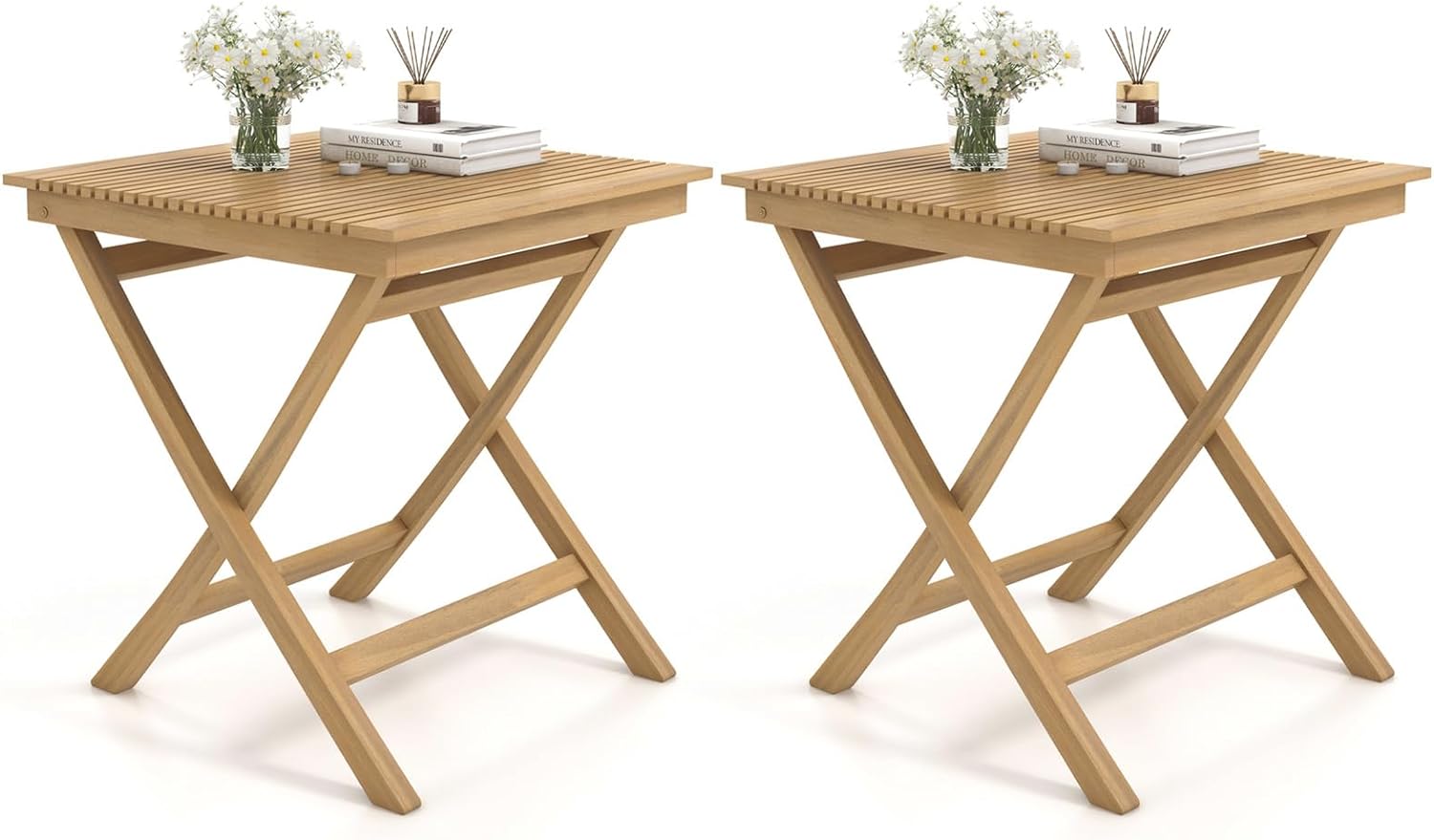 Tangkula 27.5 Inch Patio Bistro Table, Teak Wood Square Table with Slatted Tabletop