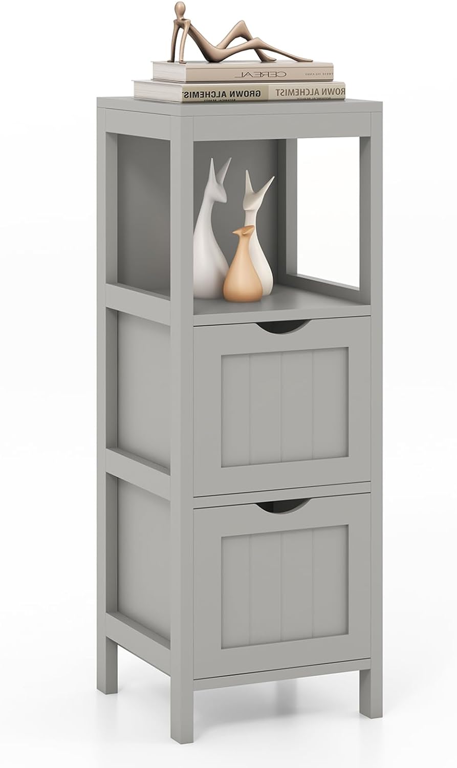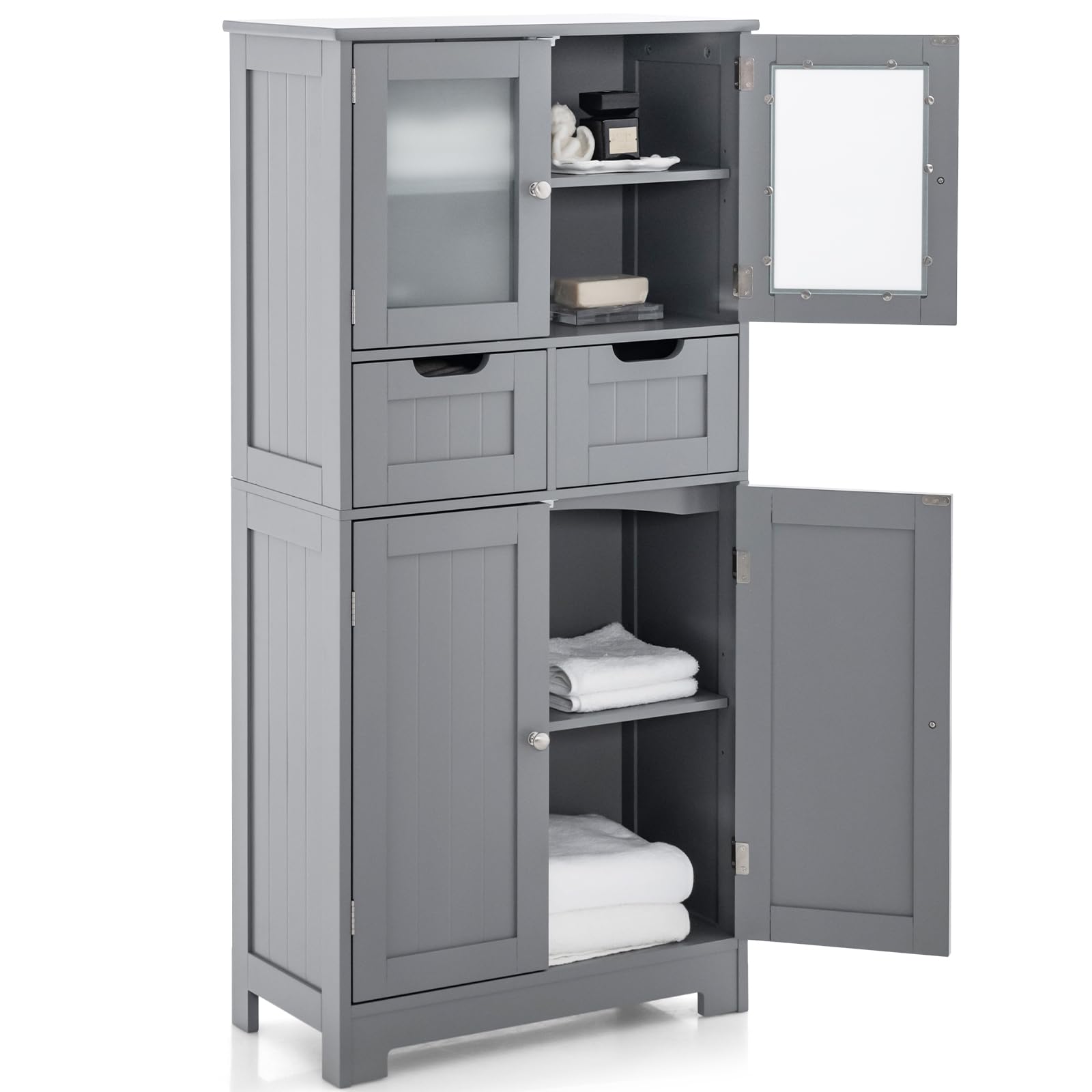 Tangkula Bathroom Floor Cabinet, Multifunctional Storage Cabinet with Anti-Tipping Device