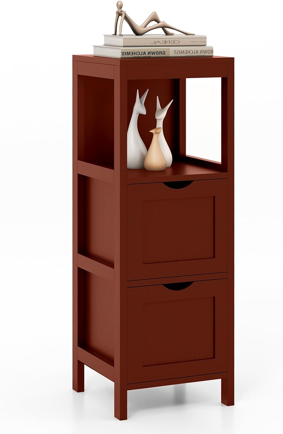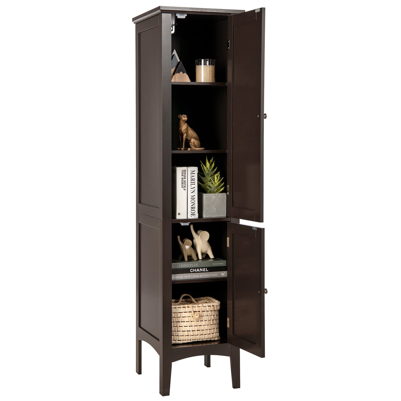 Tangkula Tall Bathroom Cabinet, Home Bedroom Living Room Wood Linen Storage Cabinet Free Standing