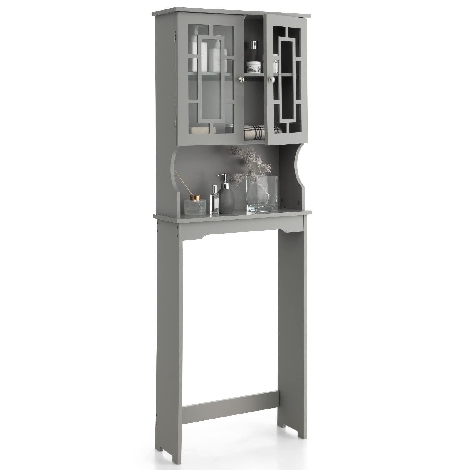 Tangkula Over The Toilet Storage Cabinet w/Double Tempered Glass Doors