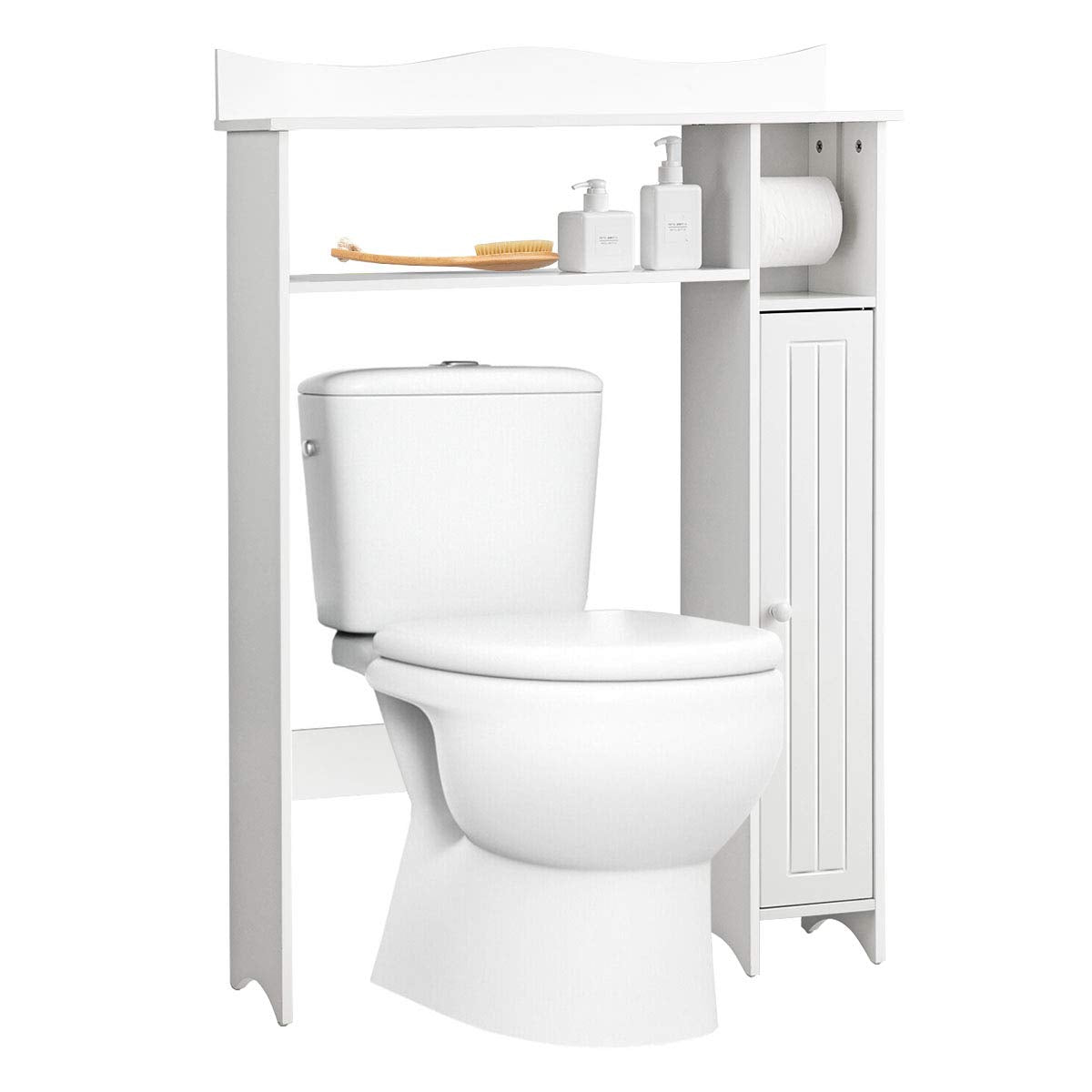Tangkula Over The Toilet Storage Cabinet Bathroom Organizer w/Toilet Paper Holder