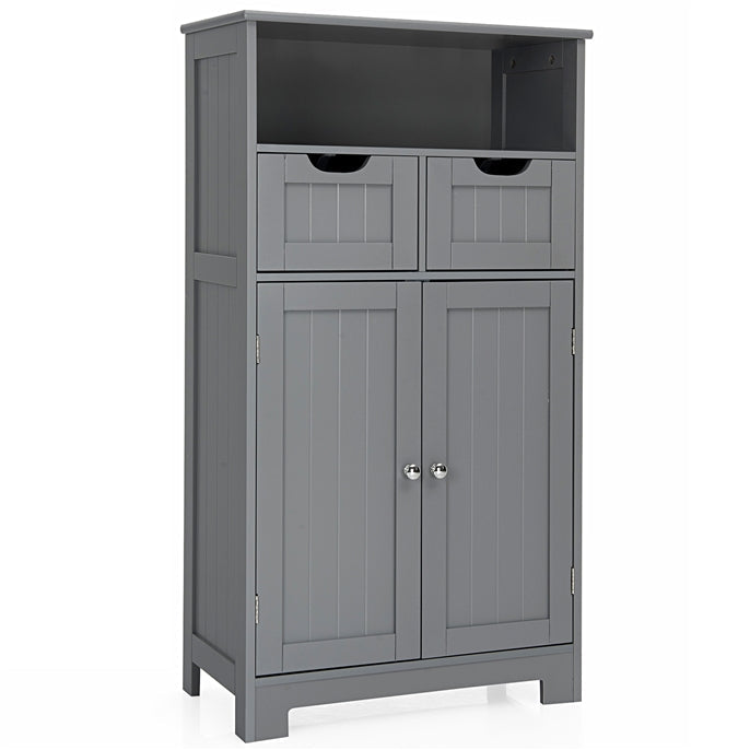 Tangkula Bathroom Floor Cabinet, Storage Cabinet w/One Open Shelf Two Doors and Two Adjustable Drawers, Standing Cupboard for Kitchen