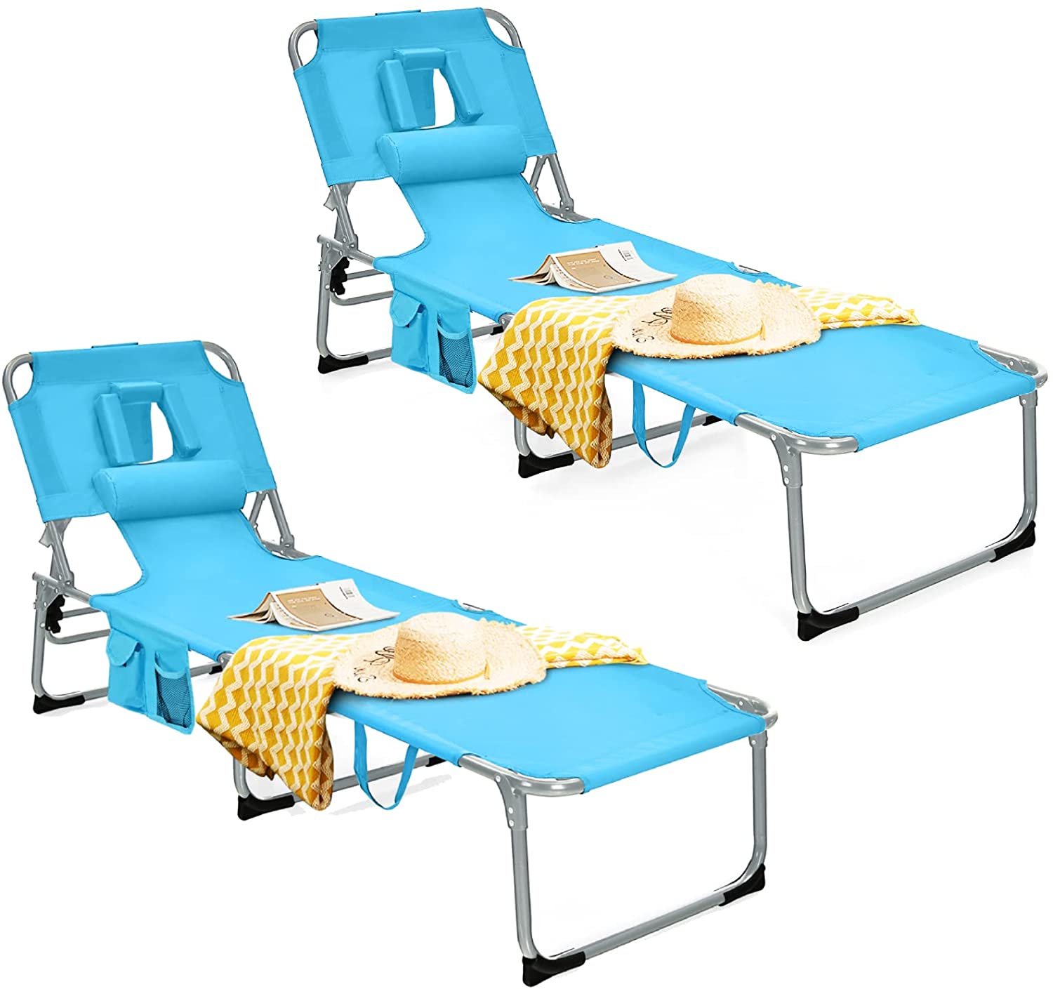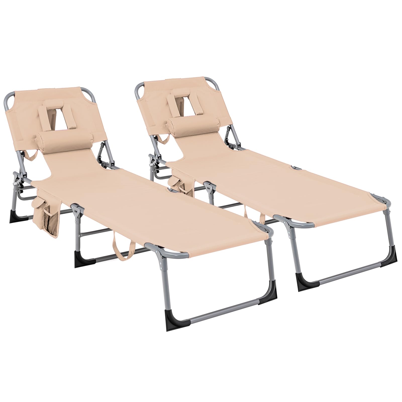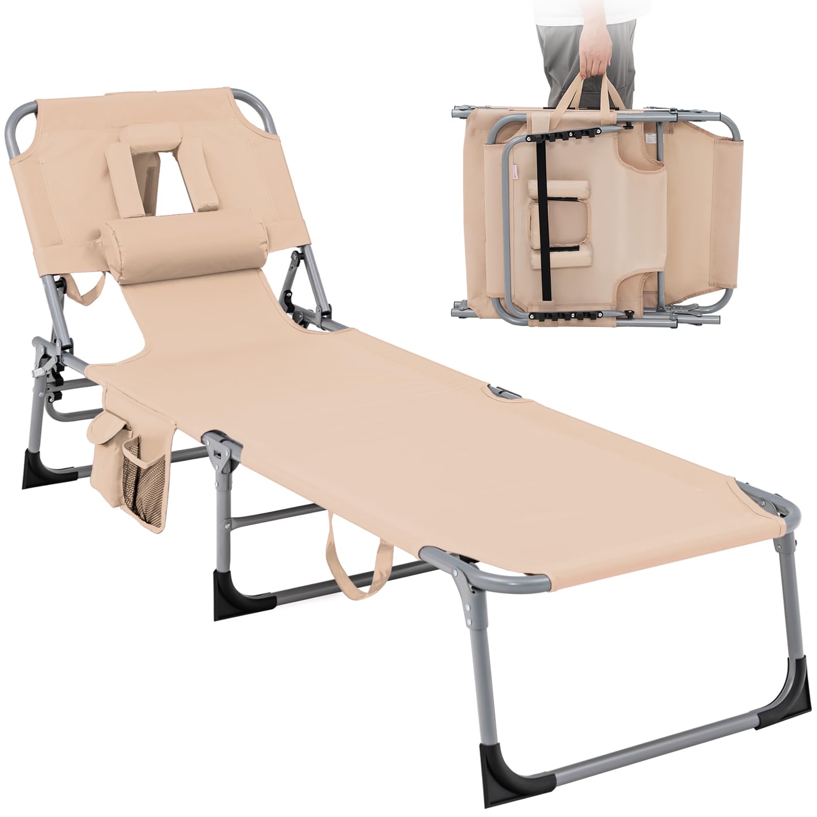 Beach Chaise Lounge Chair with Hole for Face, for Outdoor Backyard Poolside
