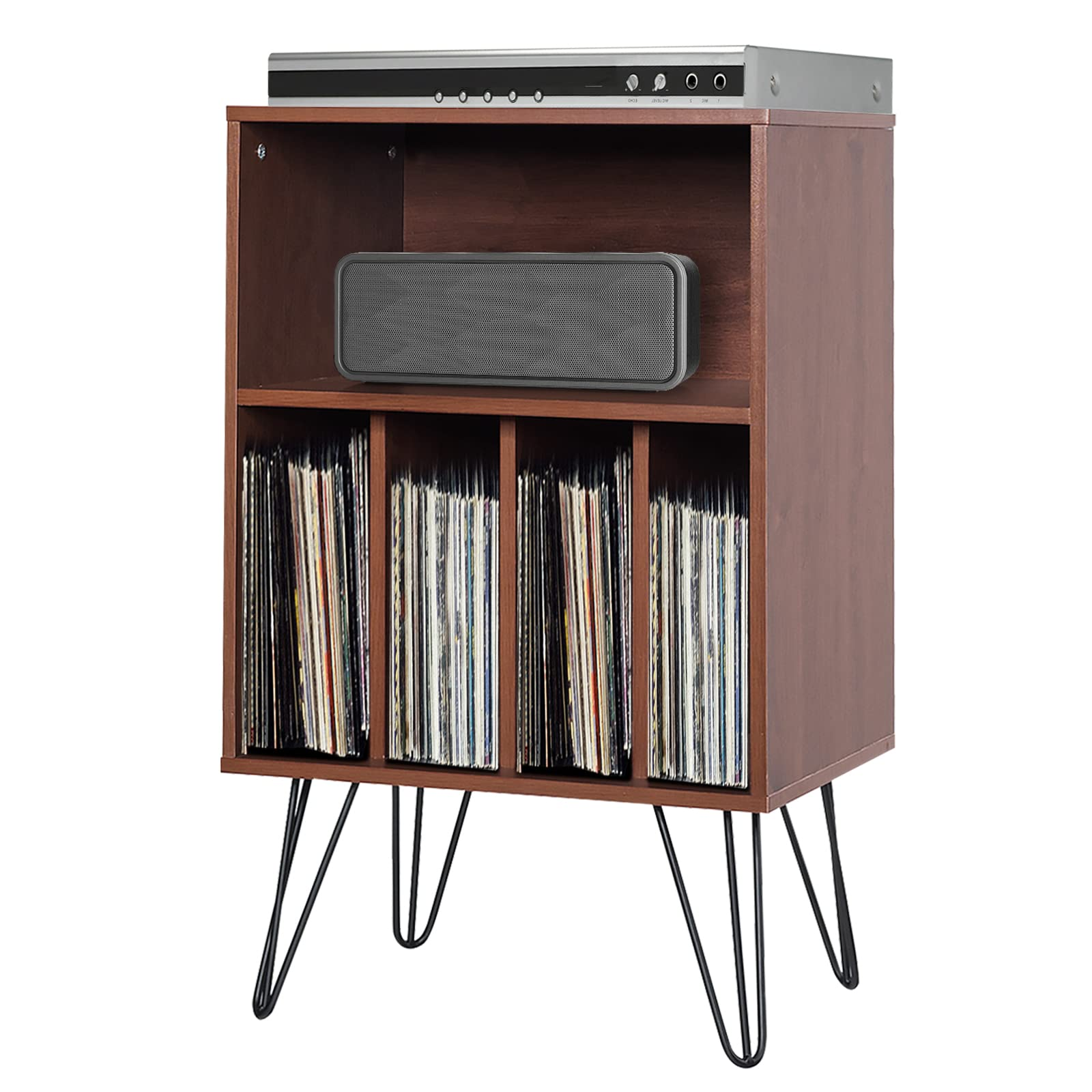 Enough Storage Space: Our turntable stand comes with 5 open compartments for storing various kinds of albums. With two different sizes of 4.5"(L) x 18"(W) x...