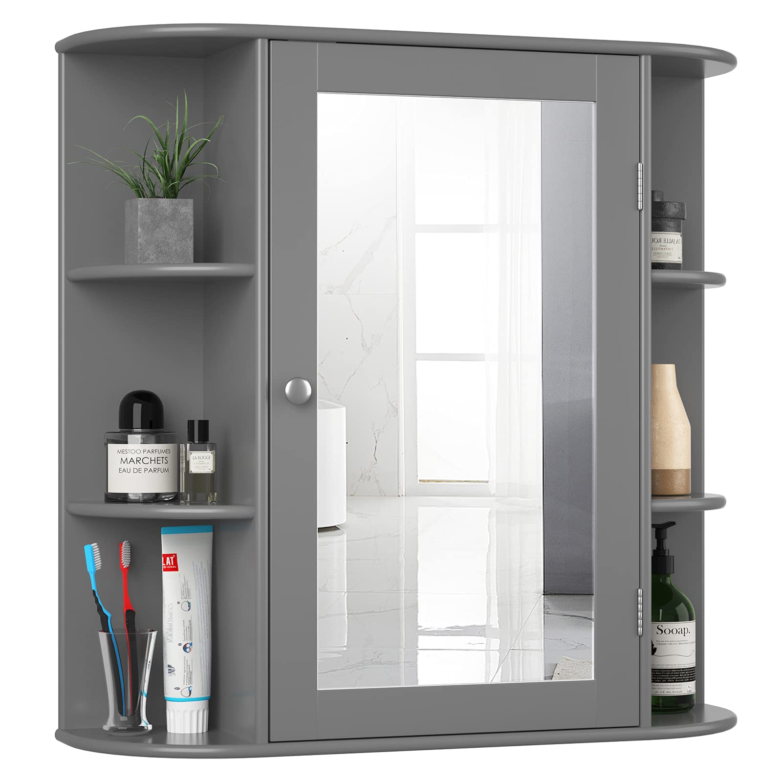 Tangkula Bathroom Medicine Cabinet with Mirror with Mirror, Wall Mounted Bathroom Storage Cabinet