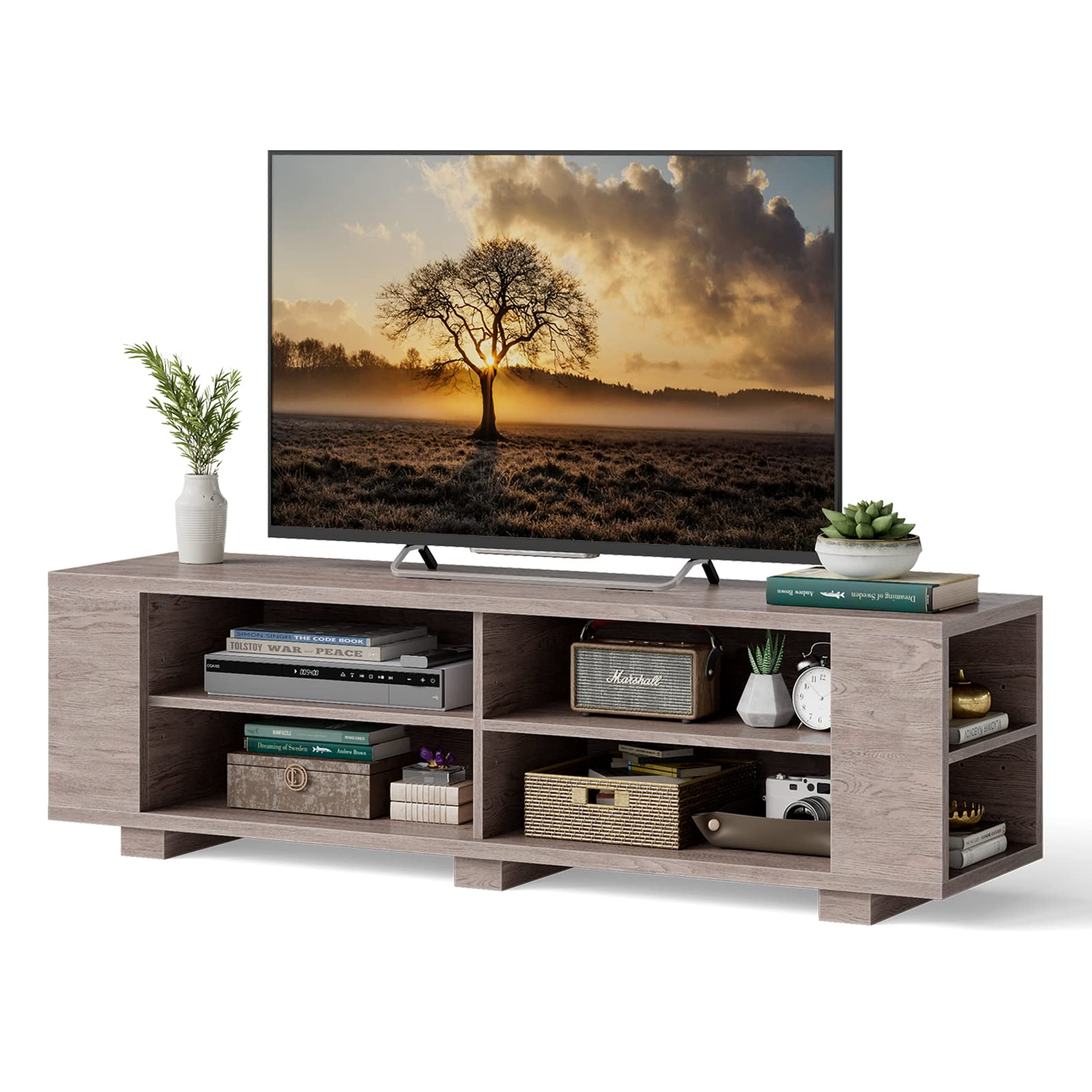 Tangkula Wood TV Stand for TVs up to 65 Inch Flat Screen, Modern Entertainment Center with 8 Open Shelves