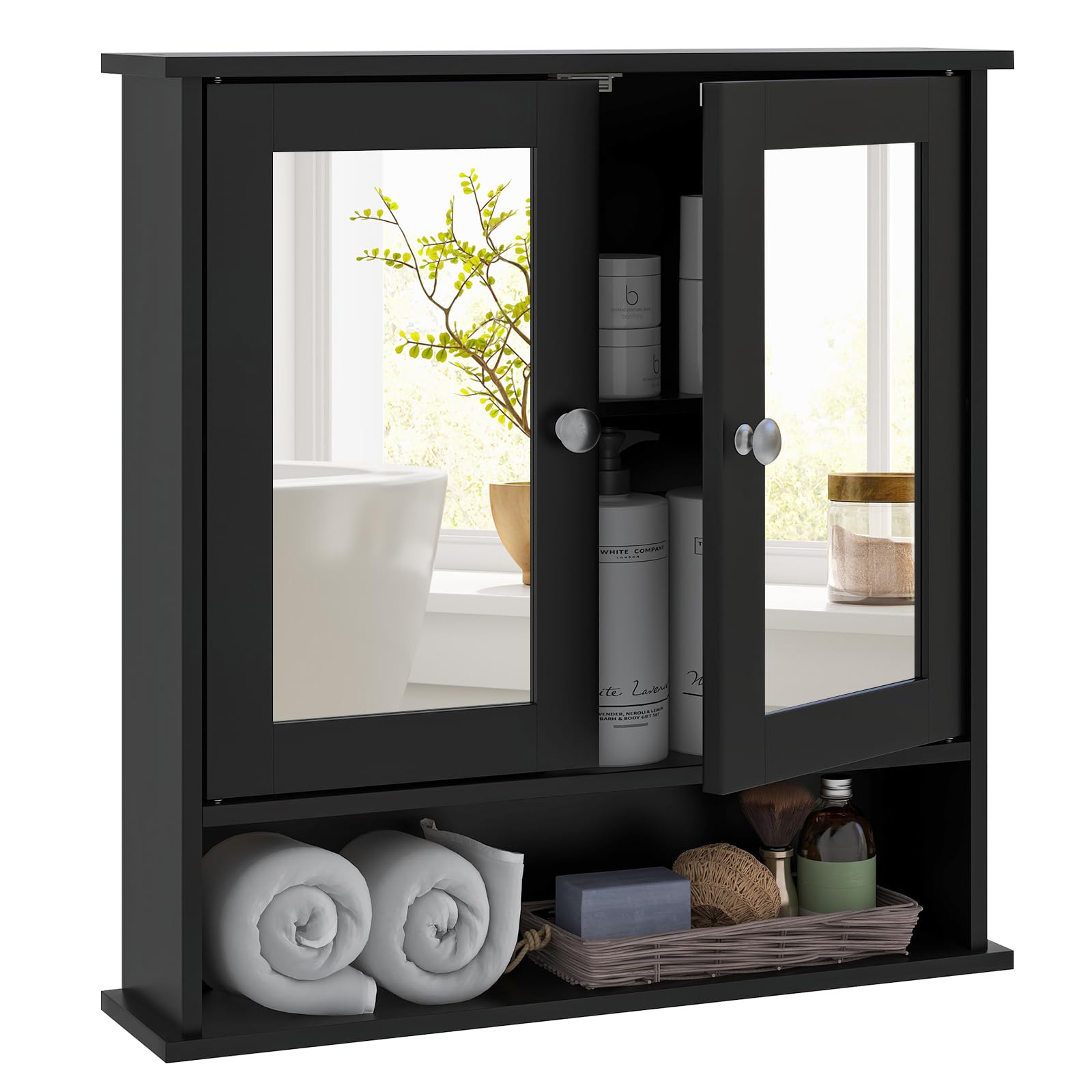 Tangkula Bathroom Cabinet Wall Mounted with Double Mirror Doors