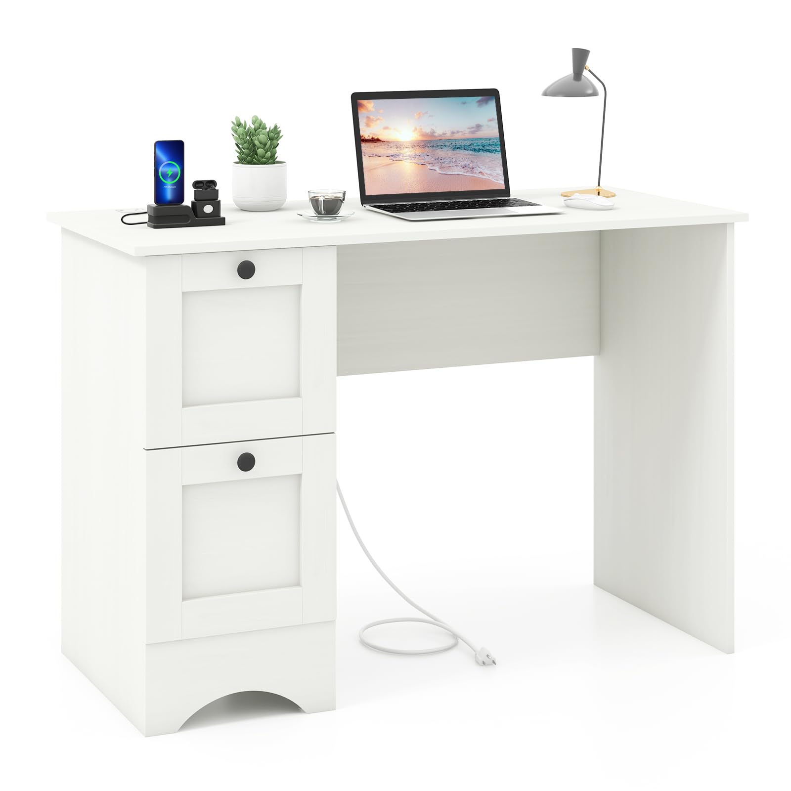 Tangkula White Desk with Storage Drawer & 4 Shelves