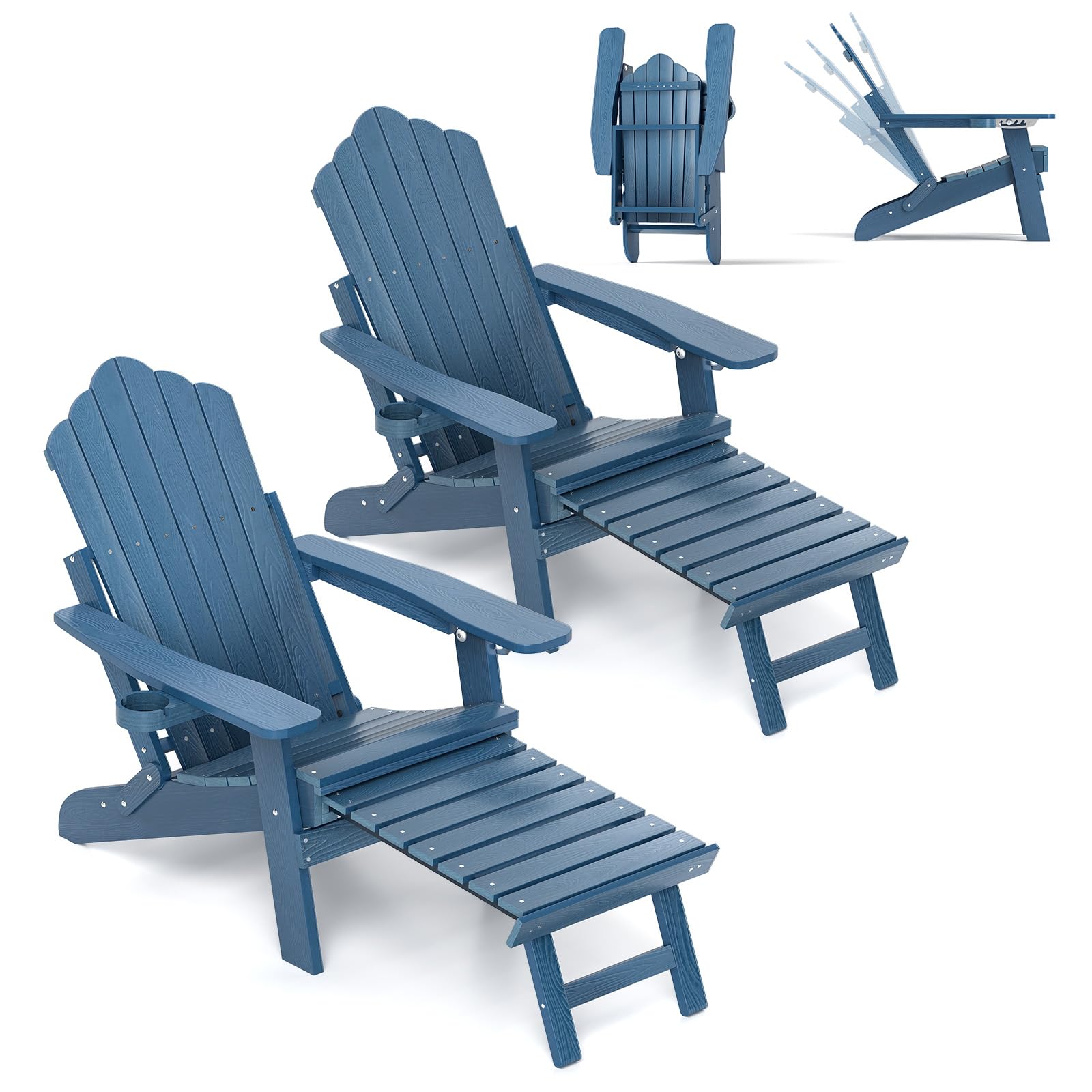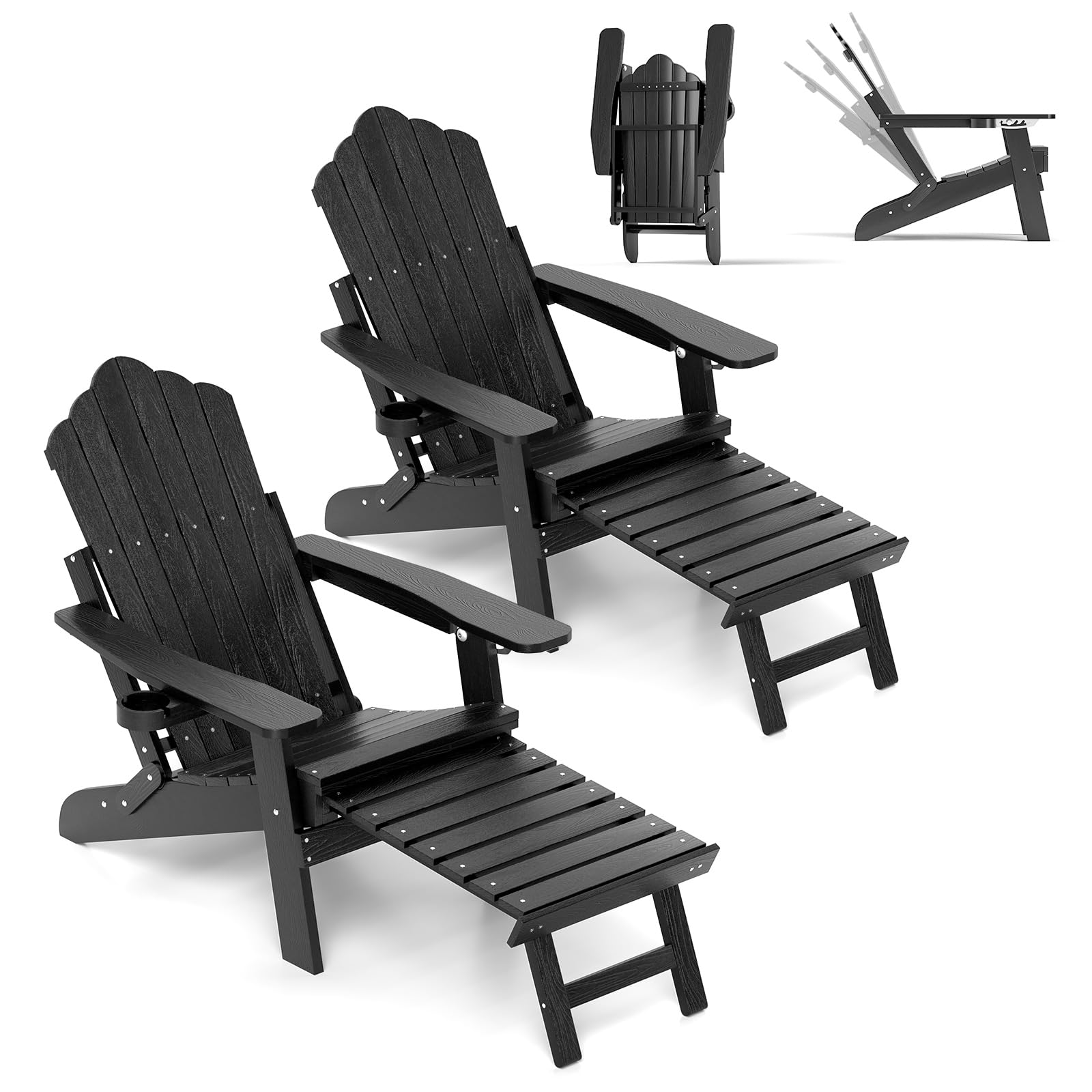 Tangkula Folding Adirondack Chair, All-Weather HIPS Lounge Chair w/Retractable Footrest & Adjustable Backrest