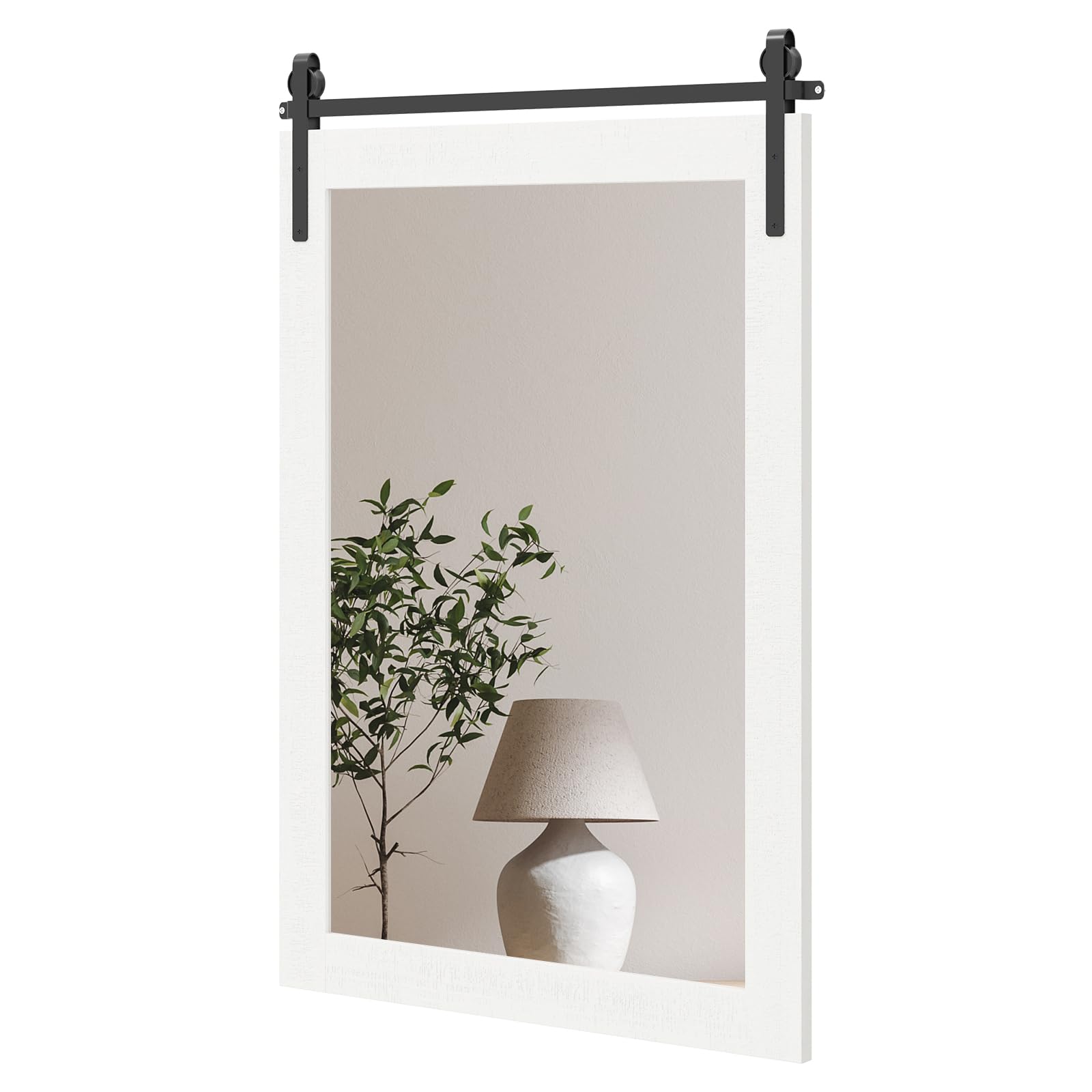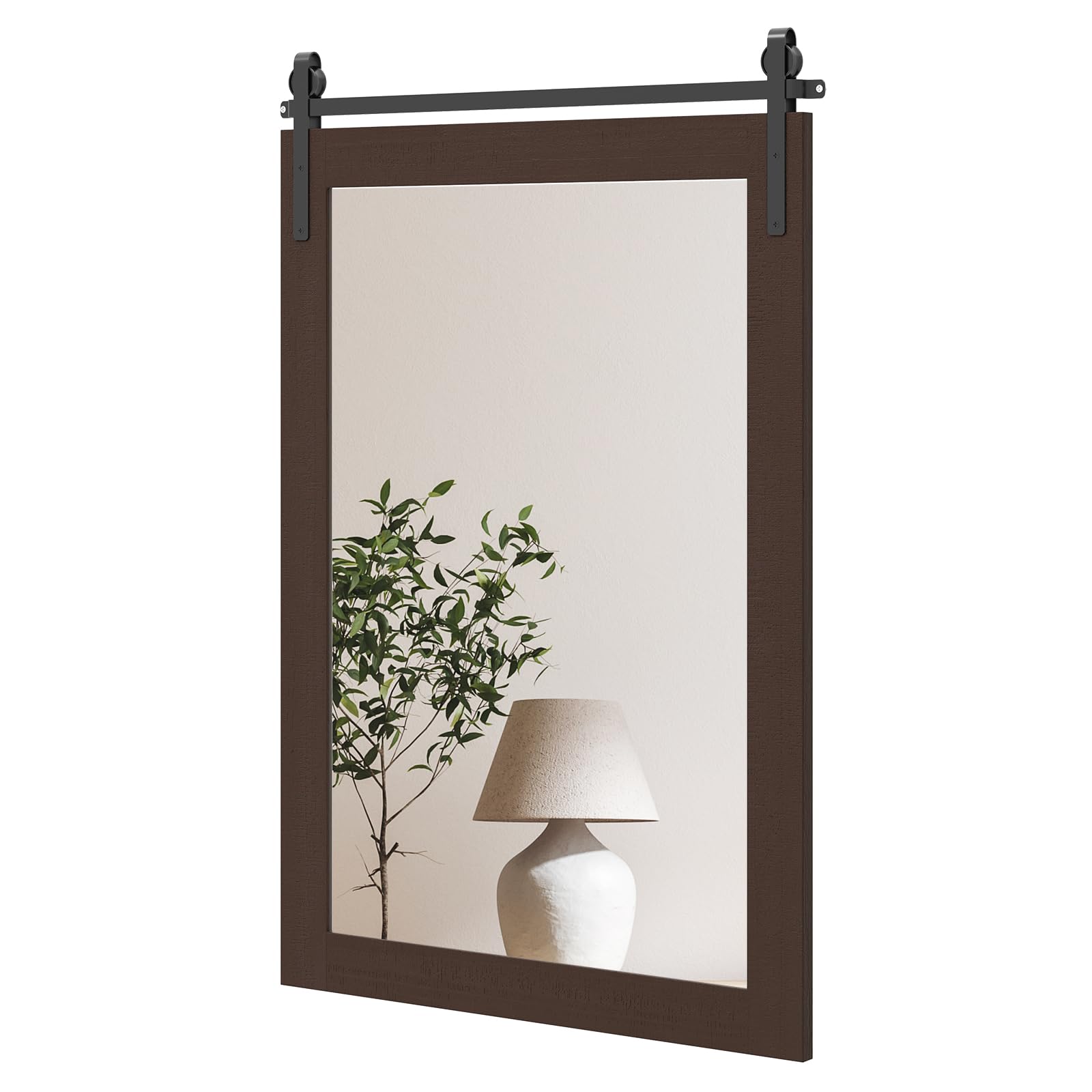 Tangkula Farmhouse Wall Mirror with Wood Frame & Metal Bracket( 36"L x 24"W)