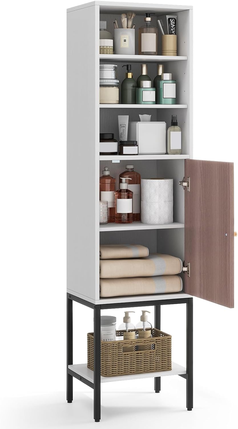 Tangkula Tall Bathroom Storage Cabinet with 1 Door and 4 Shelves, 57" H Narrow Floor Cabinet with Adjustable Shelves