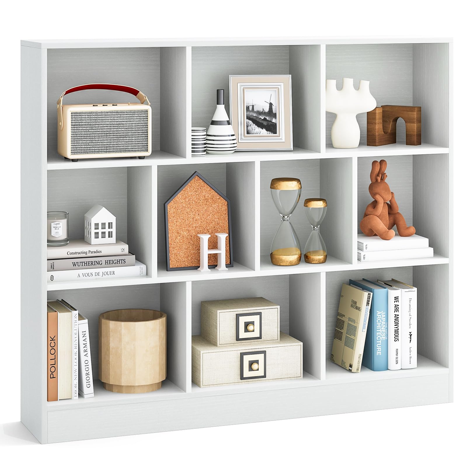 Ample Storage Space: Organize and showcase your favorite reads and collectibles with the bookshelf, featuring 10 wide cubes. This modern storage solution is perfect not only...