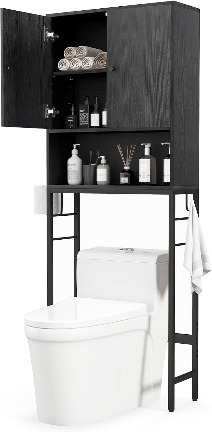 Spacious Storage Space: Featuring a top shelf, 3 compartments and 3-tier shelves, this over the toilet storage cabinet offers multiple storage areas for towels, toiletries, shampoos,...