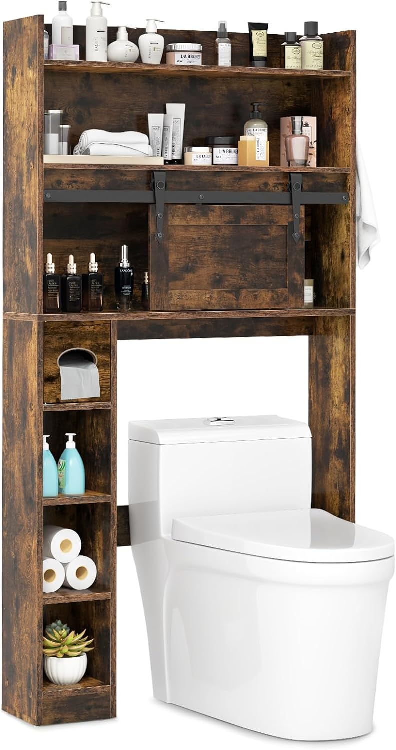 Tangkula Over The Toilet Storage Cabinet, Farmhouse Freestanding Above Toilet Rack w/Sliding Barn Door