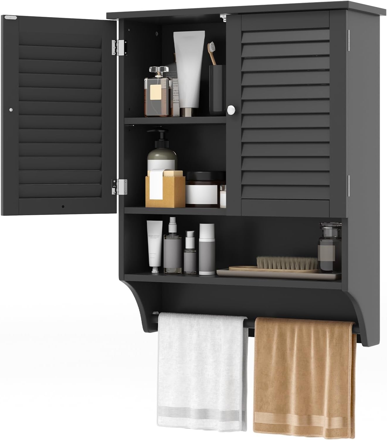 Tangkula Wall Mounted Bathroom Cabinet with Open Shelf & Bar