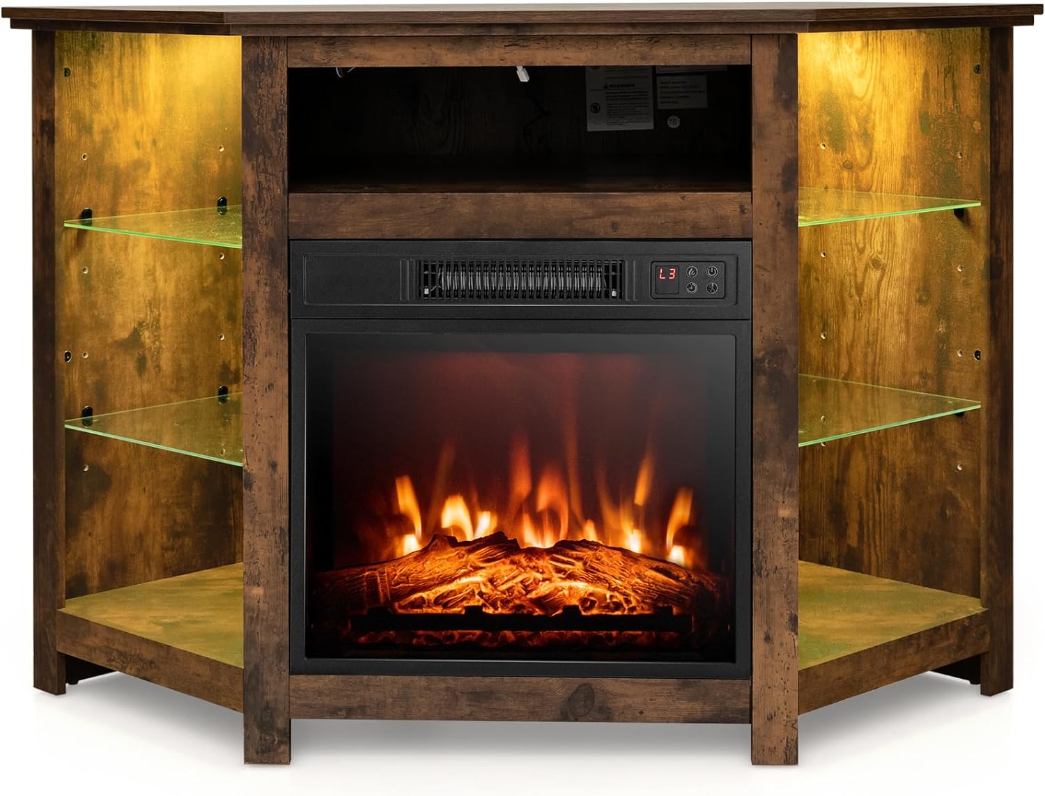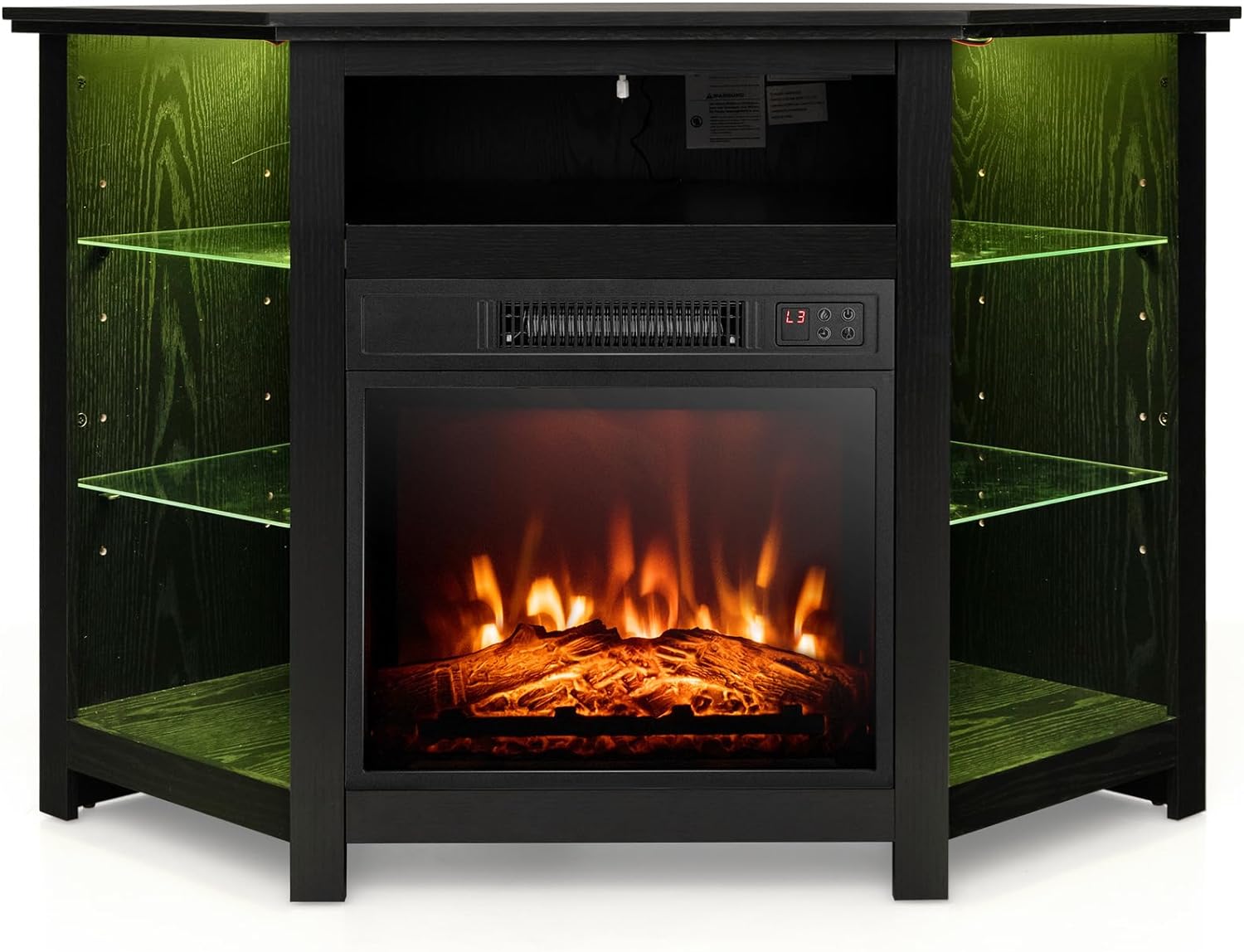 Tangkula Fireplace Corner TV Stand with LED Lights & Smart APP Control for 50 Inches TV