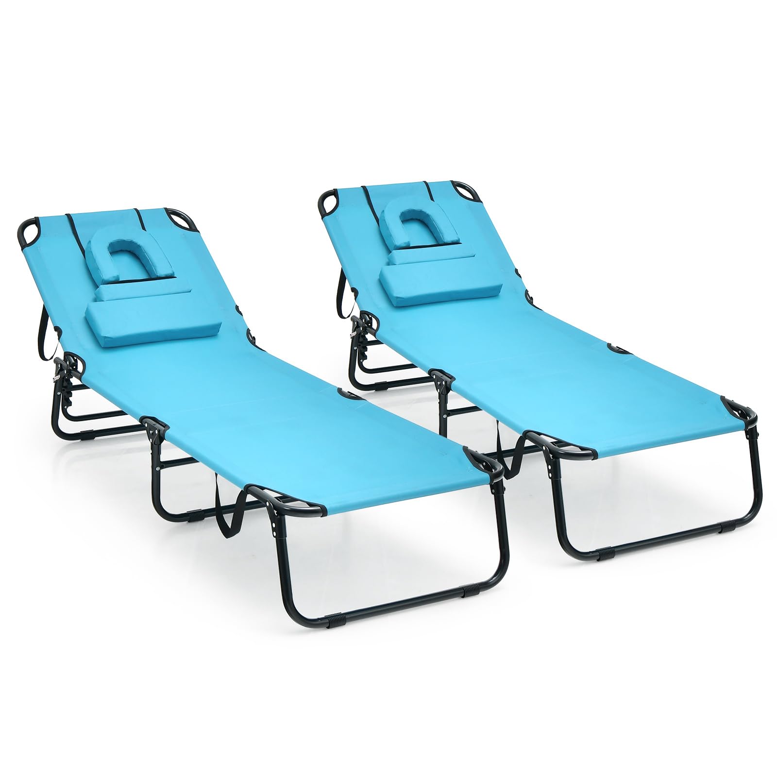 Tangkula Tanning Chair, Outdoor Folding Beach Lounge Chair with Face Hole