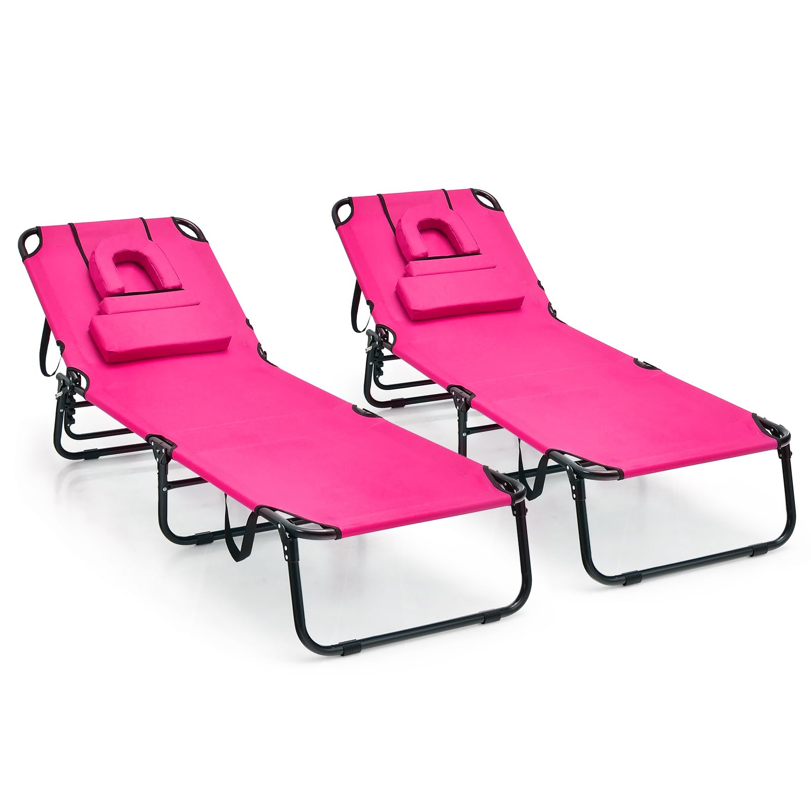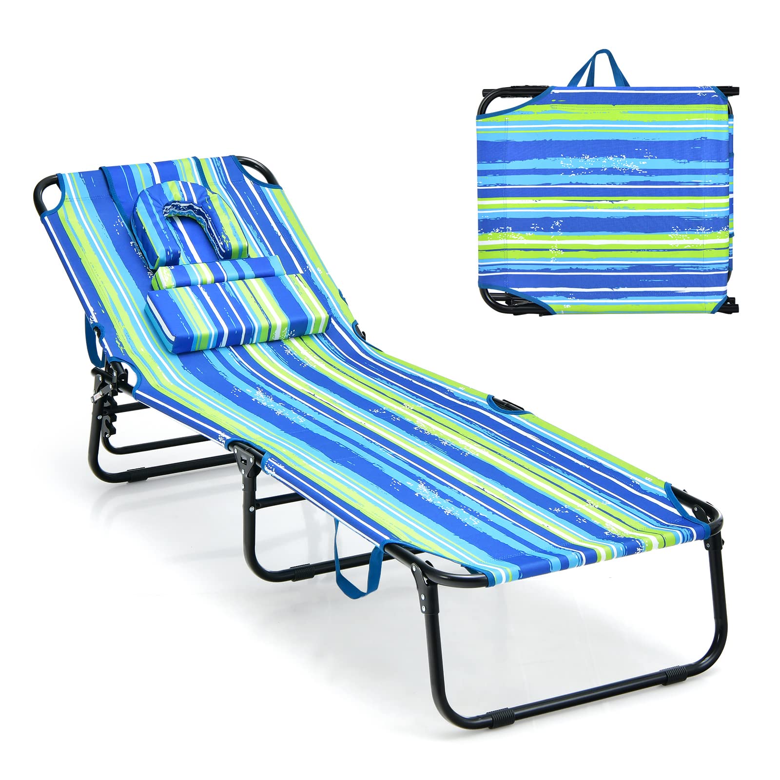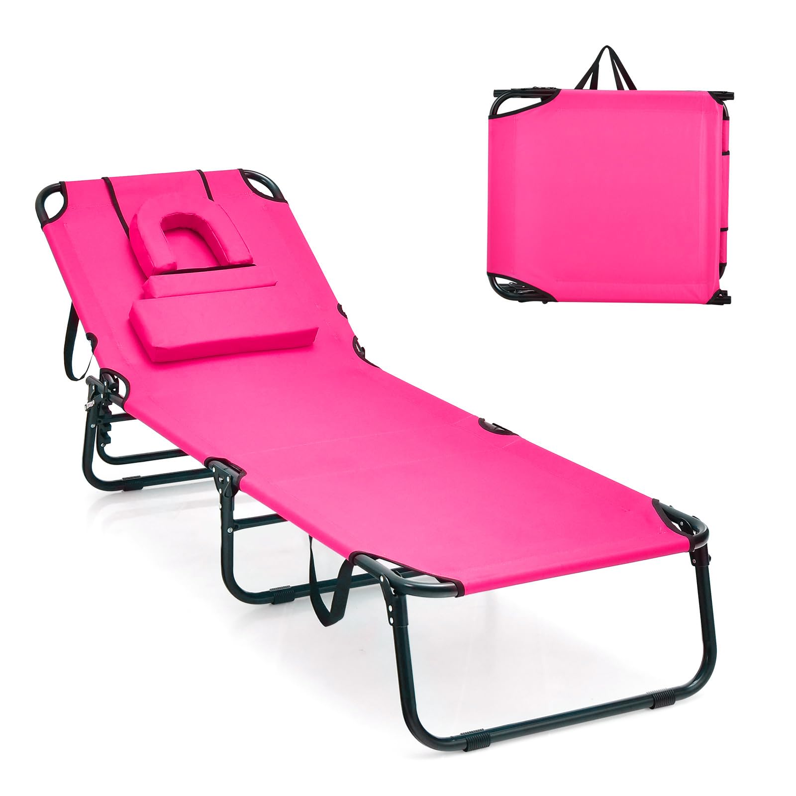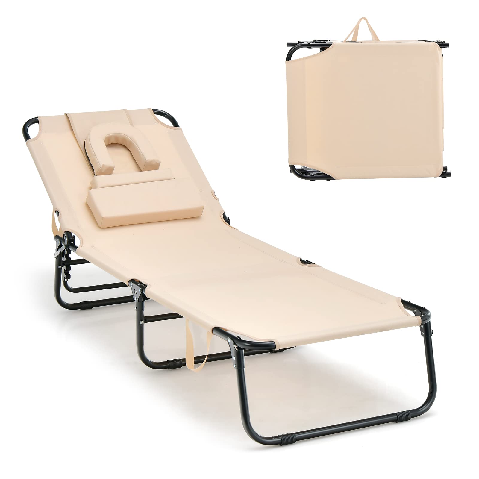 Tangkula Beach Lounge Chair, Folding Sunbathing Recliner with Face Hole
