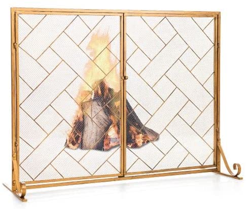 Tangkula Single Panel Fireplace Screen, Wrought Metal Fire Spark Guard