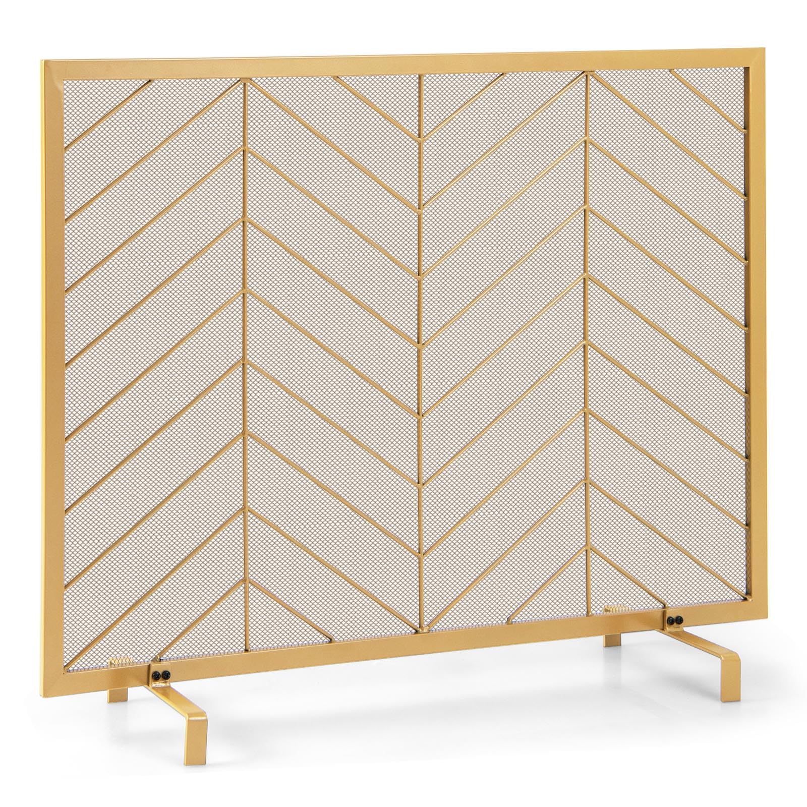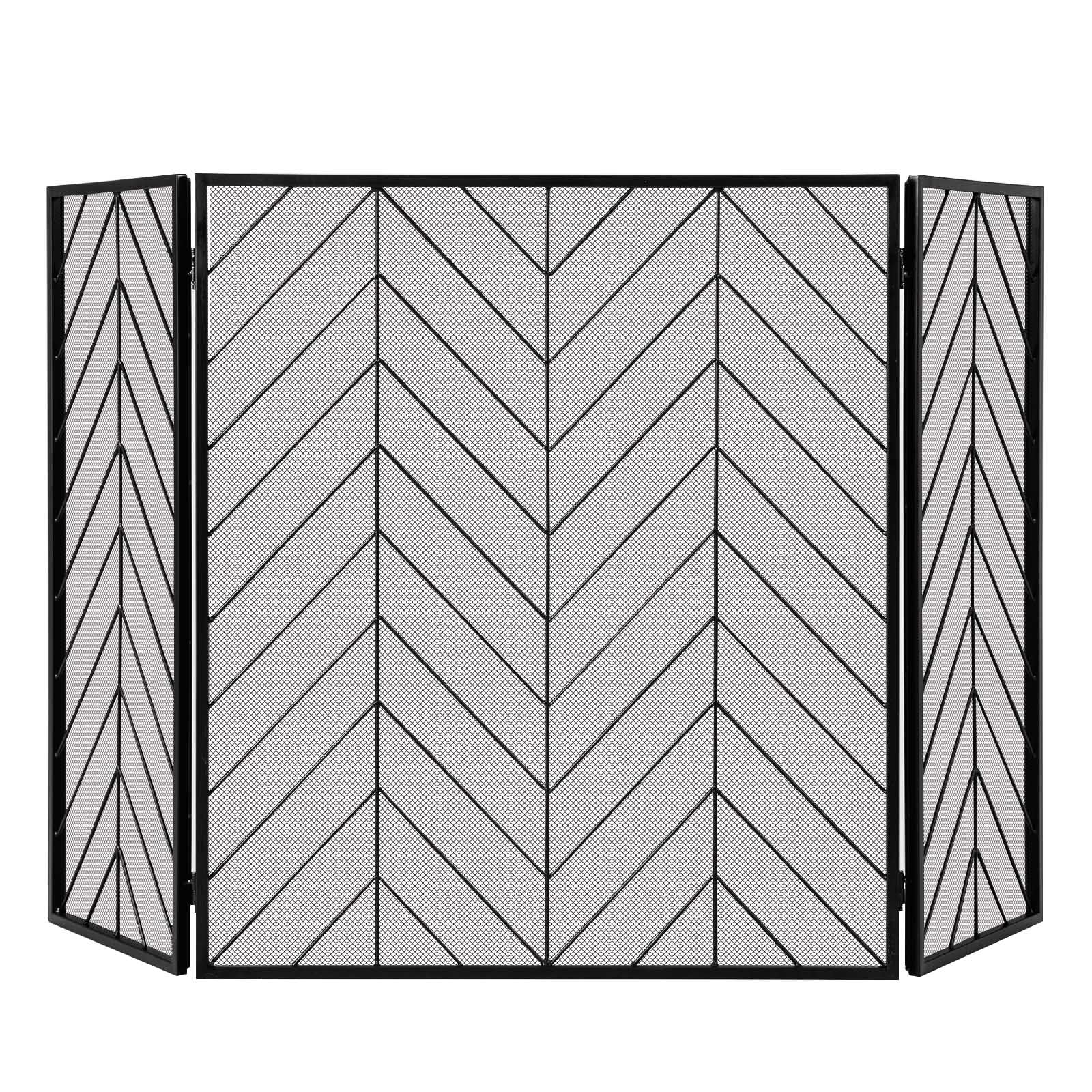 Tangkula 52 x 31 Inch Fireplace Screen, 3-Panel Folding Spark Guard w/Chevron Herringbone Pattern
