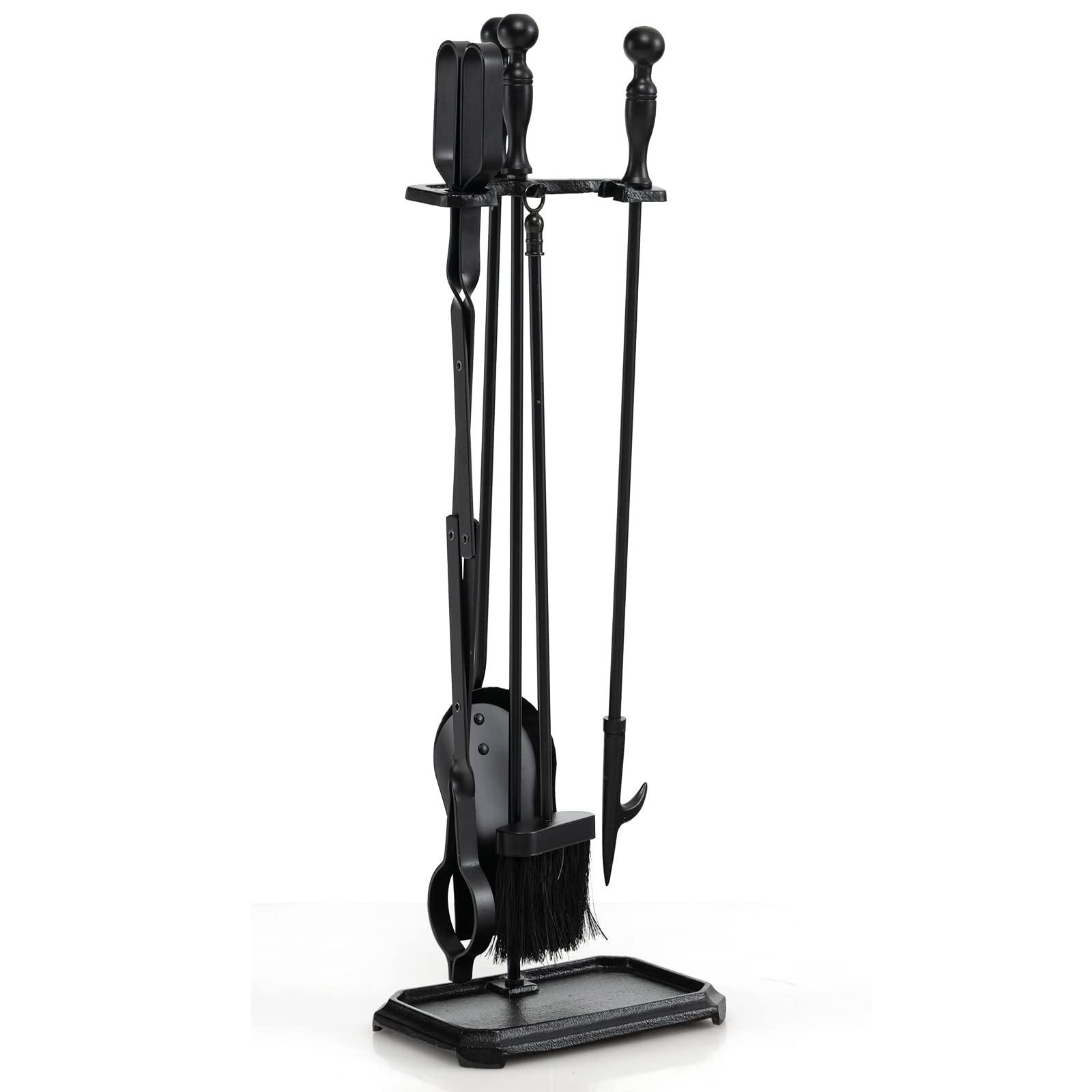 Tangkula 5-Piece Fireplace Tool Set, Heavy Duty Fire Wood Tool Set with Tong, Brush