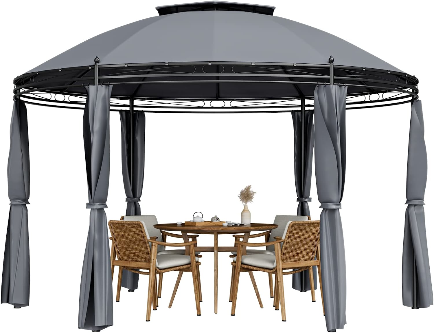 Tangkula 11.5x11.5 ft Round Patio Gazebo, 2-Tier Dome Gazebo with Removable Side Curtains