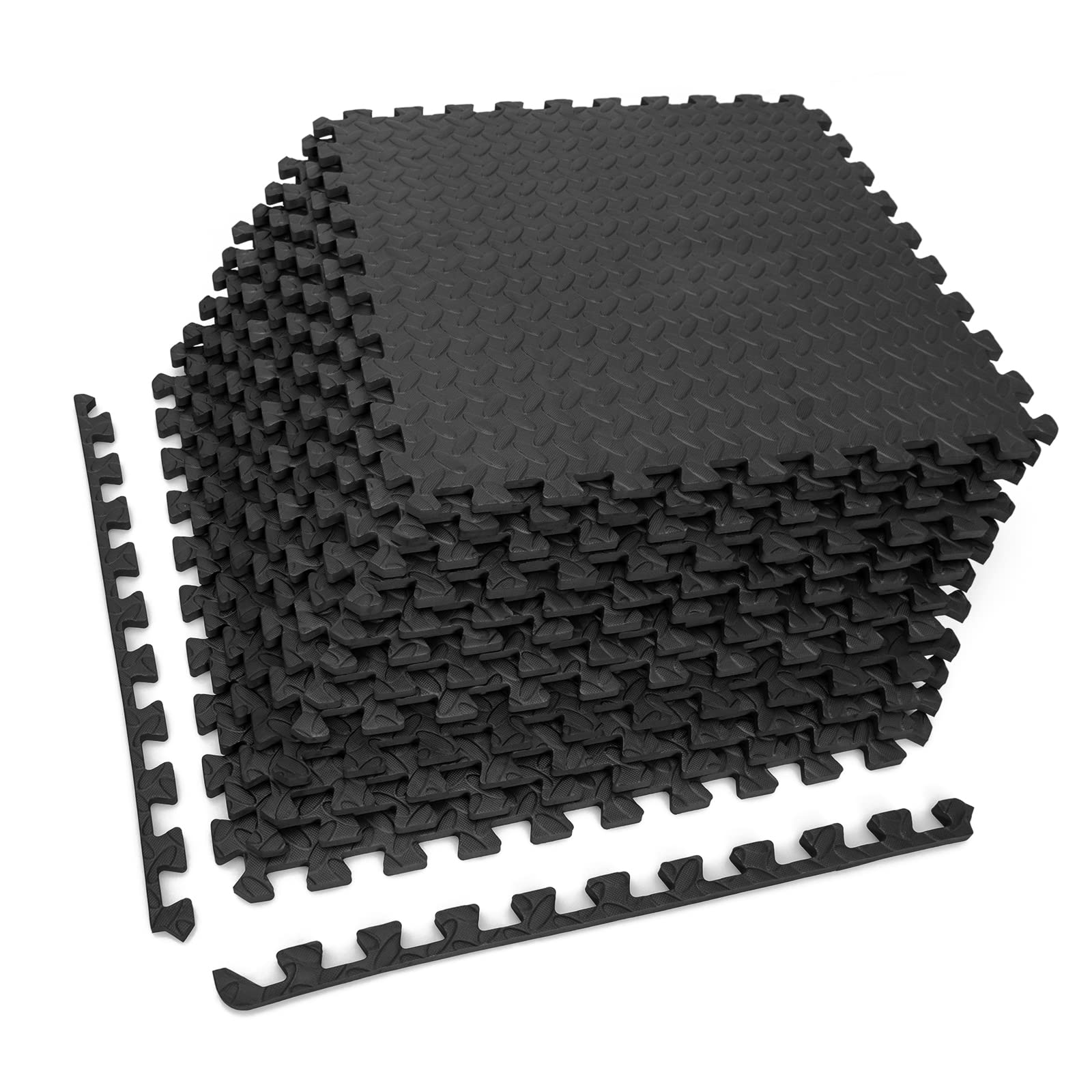 Tangkula 12 Tiles Exercise Flooring Mats with Border, Non-Slip EVA Foam Protective Mats