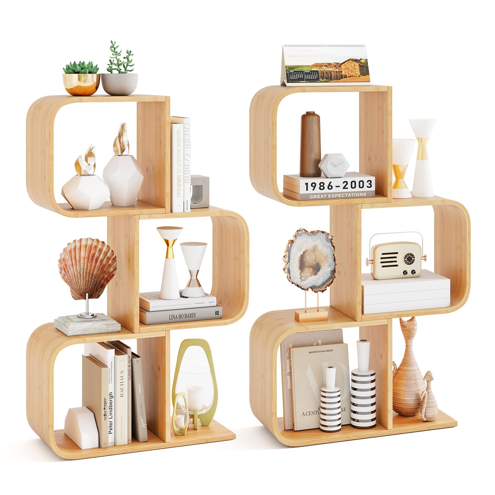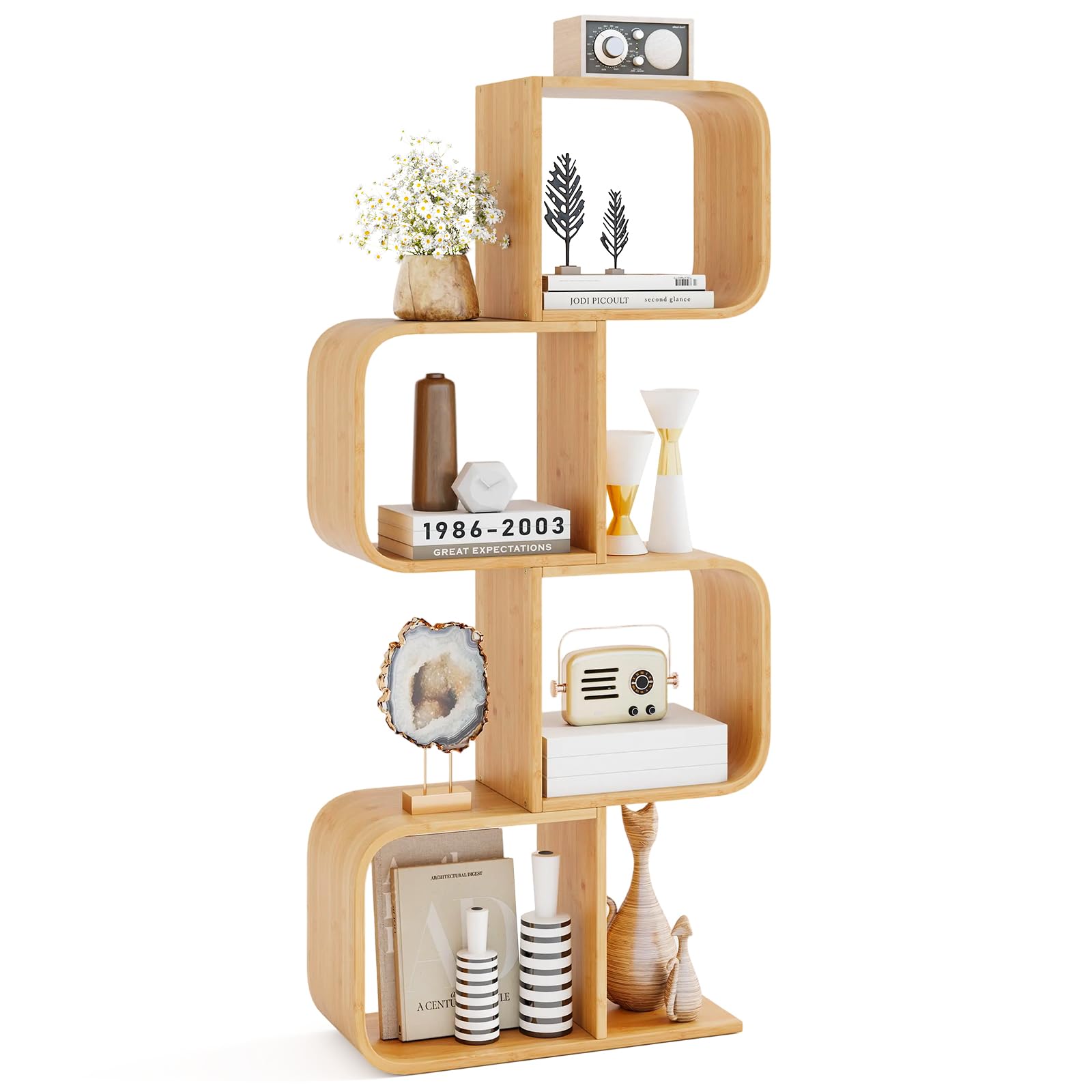About this item [Bookshelf in Geometric Design]: Featuring an S-shaped geometric design, our bookcase is not only a functional storage and display shelf but also an...