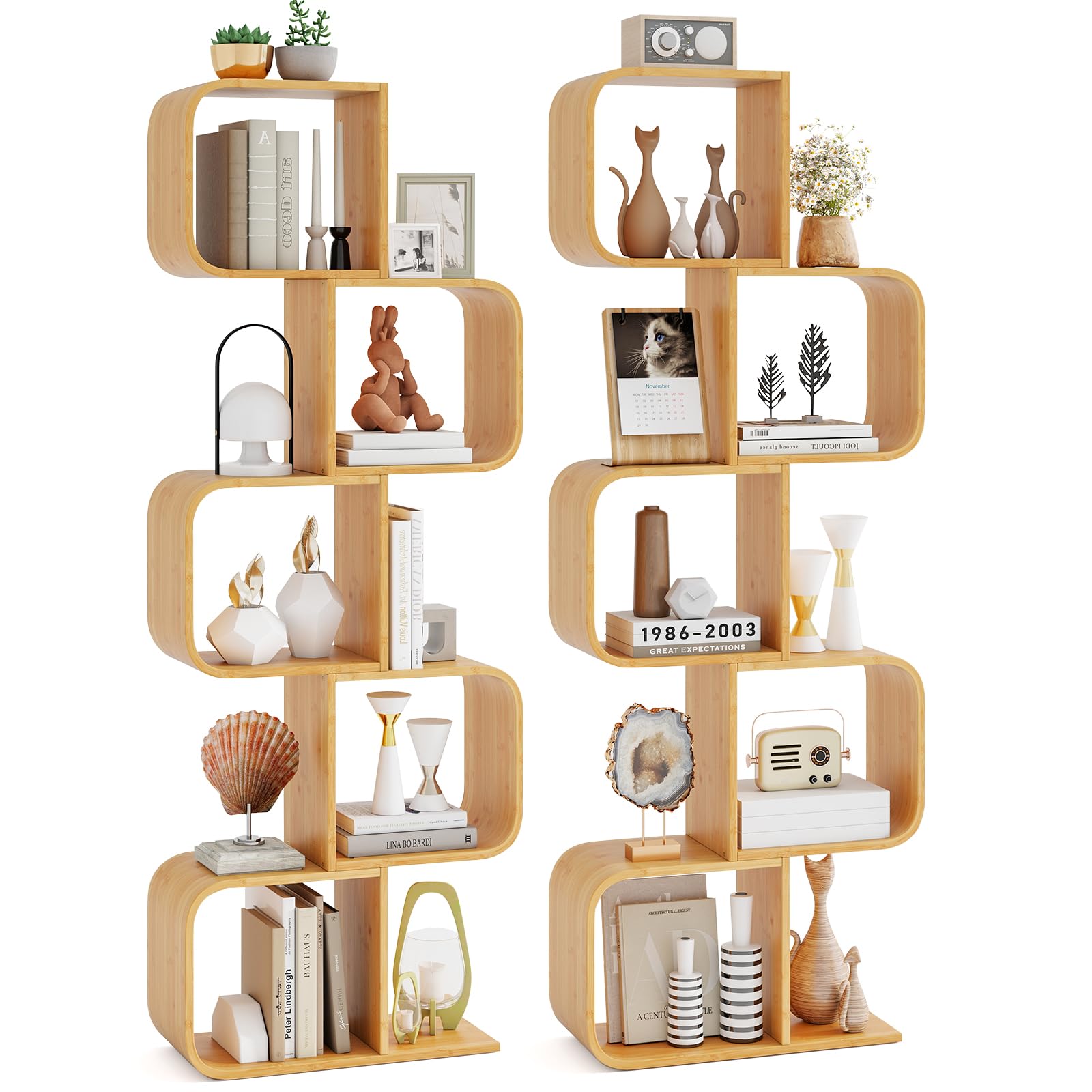 Elevate your decor with our innovative 2-tier S-shaped bookshelf, crafted from high-quality bamboo for durability and a natural touch. This stylish display shelf offers efficient open...