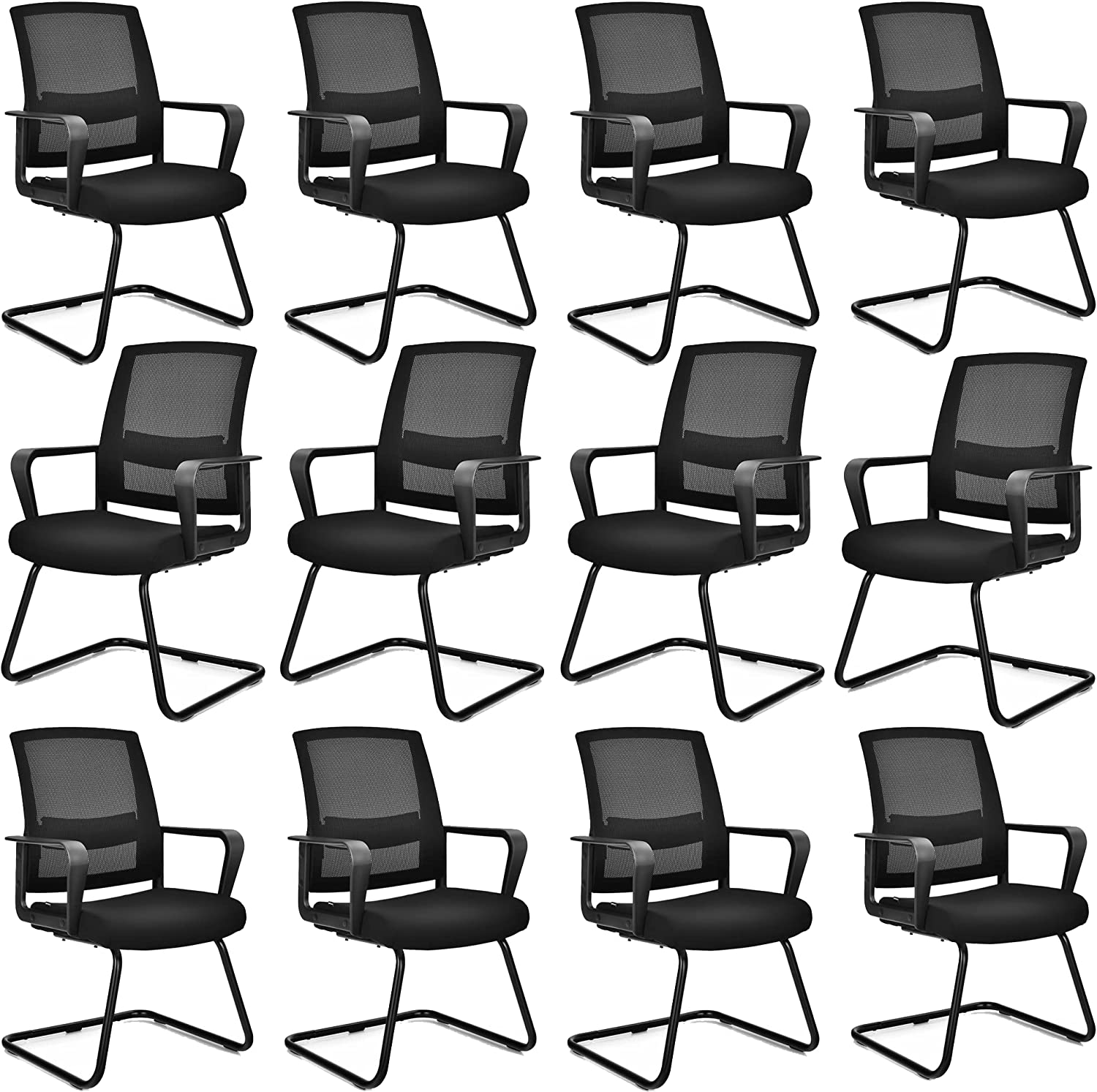 Tangkula Mid Mesh Back Office Guest Chair Chair W/Adjustable Lumbar Support & Sled Base