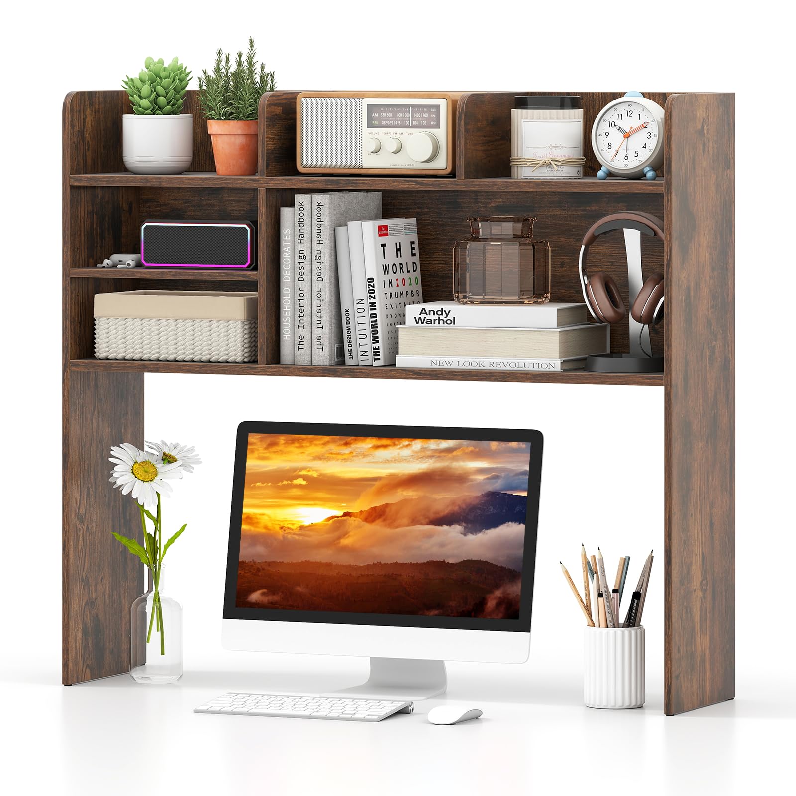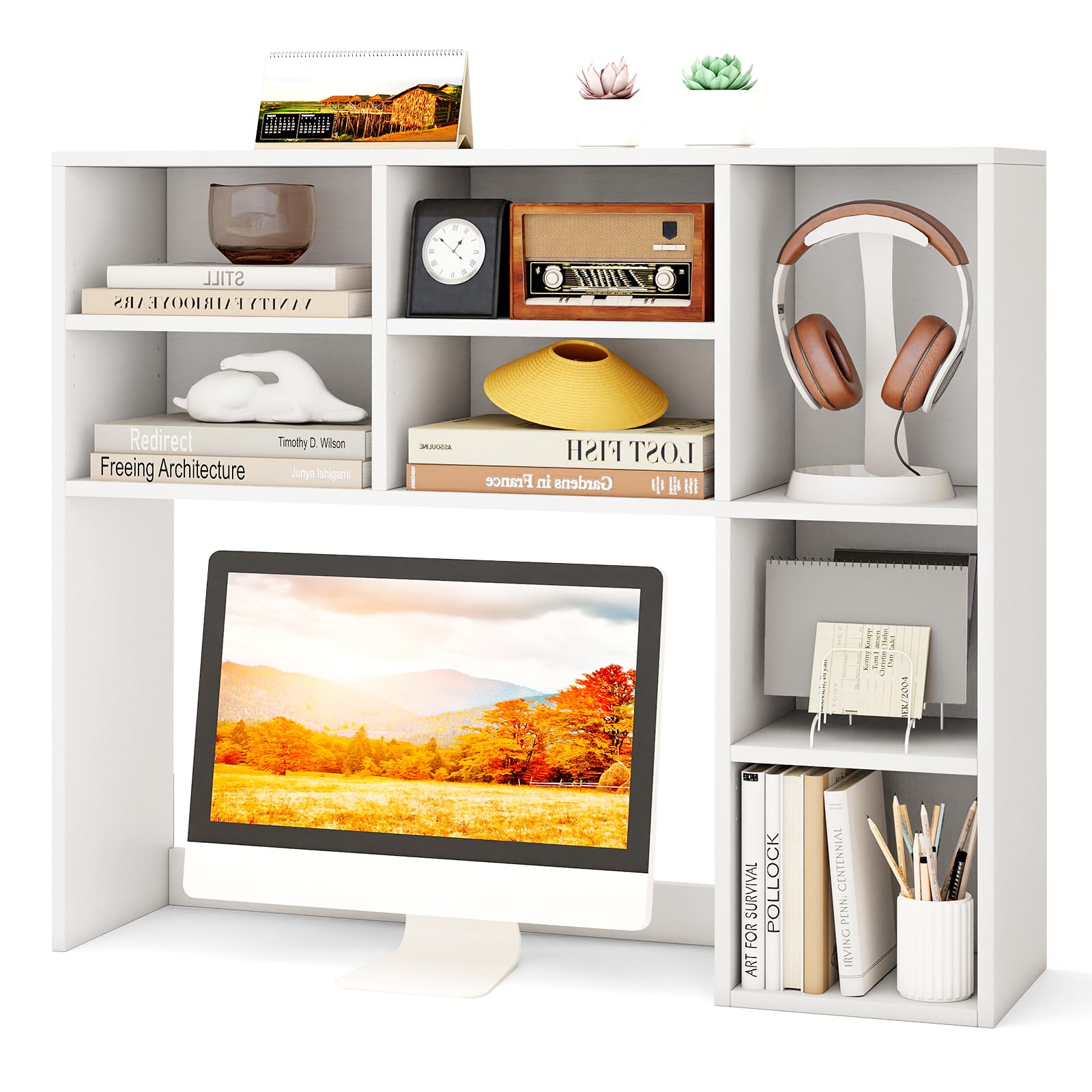 Tangkula Desktop Bookshelf Countertop Storage Hutch with 6 Storage Shelves