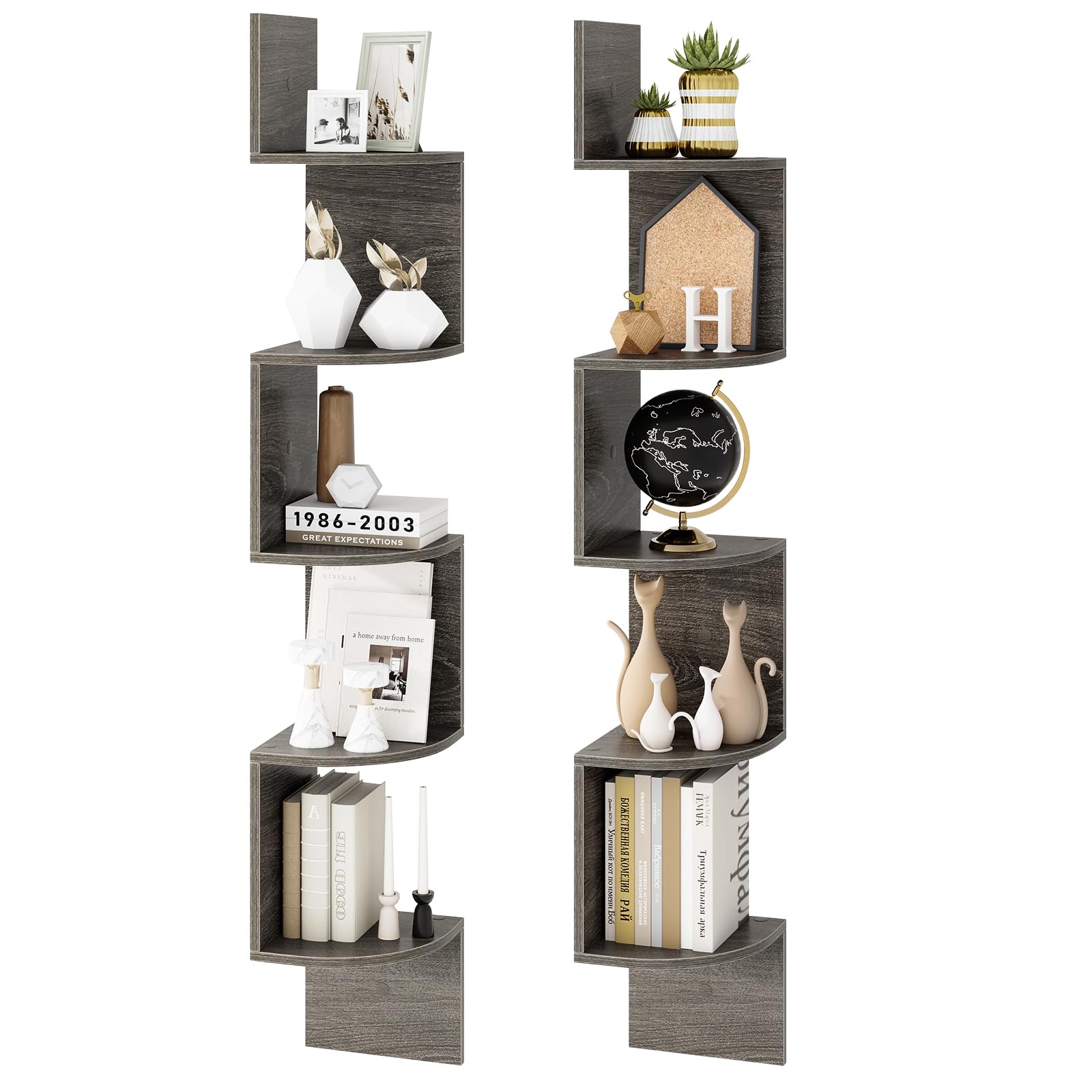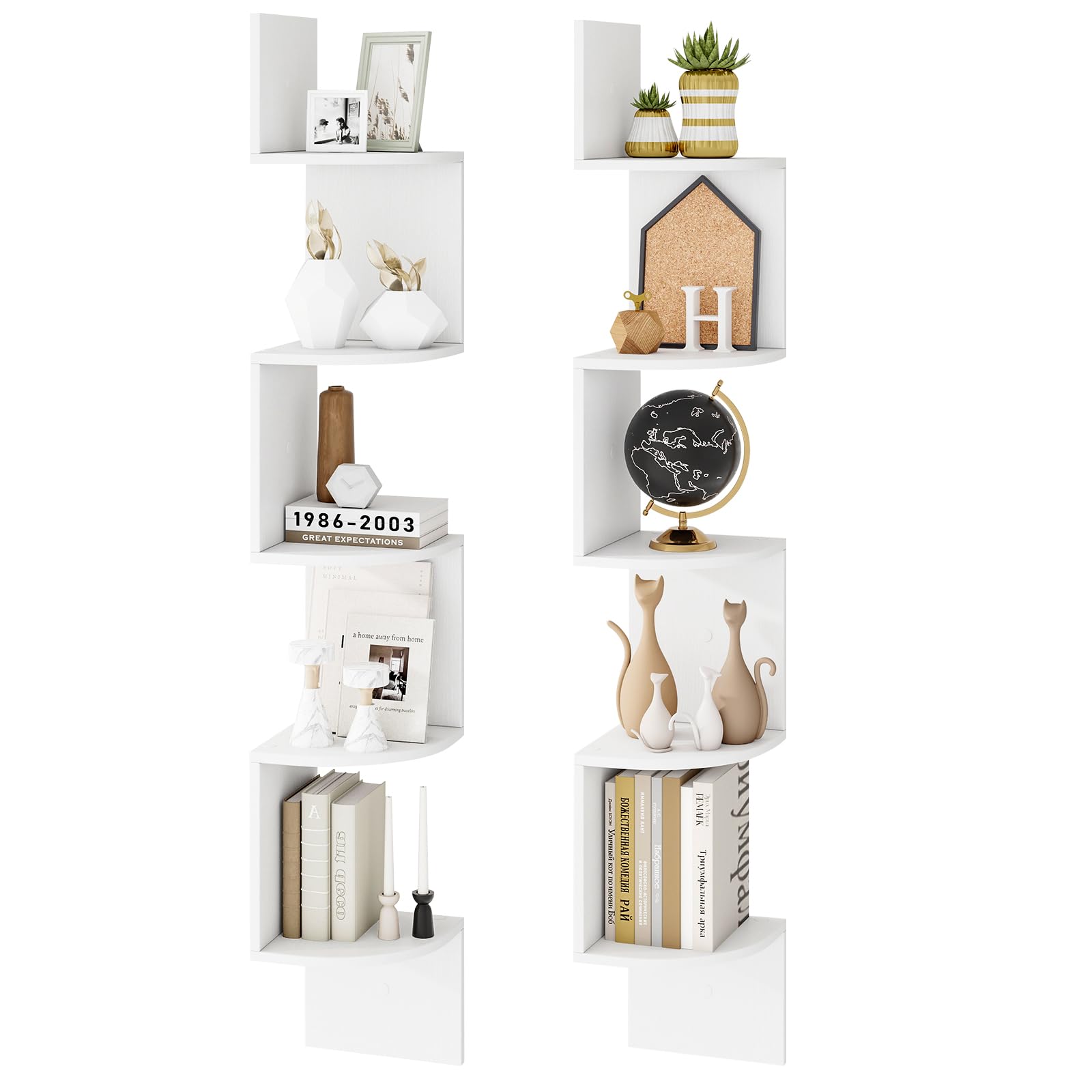 Tangkula 5-Tier Corner Shelf Wall Mount Farmhouse Floating Corner Bookshelf