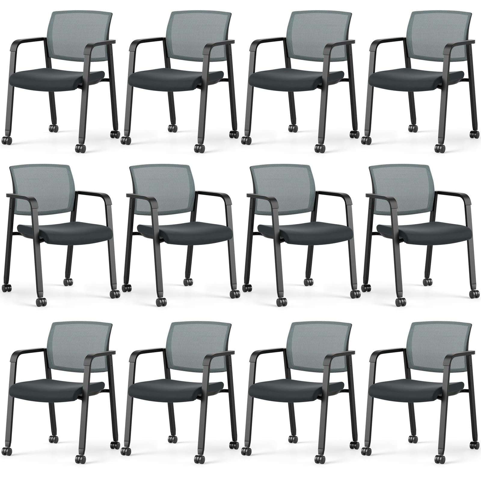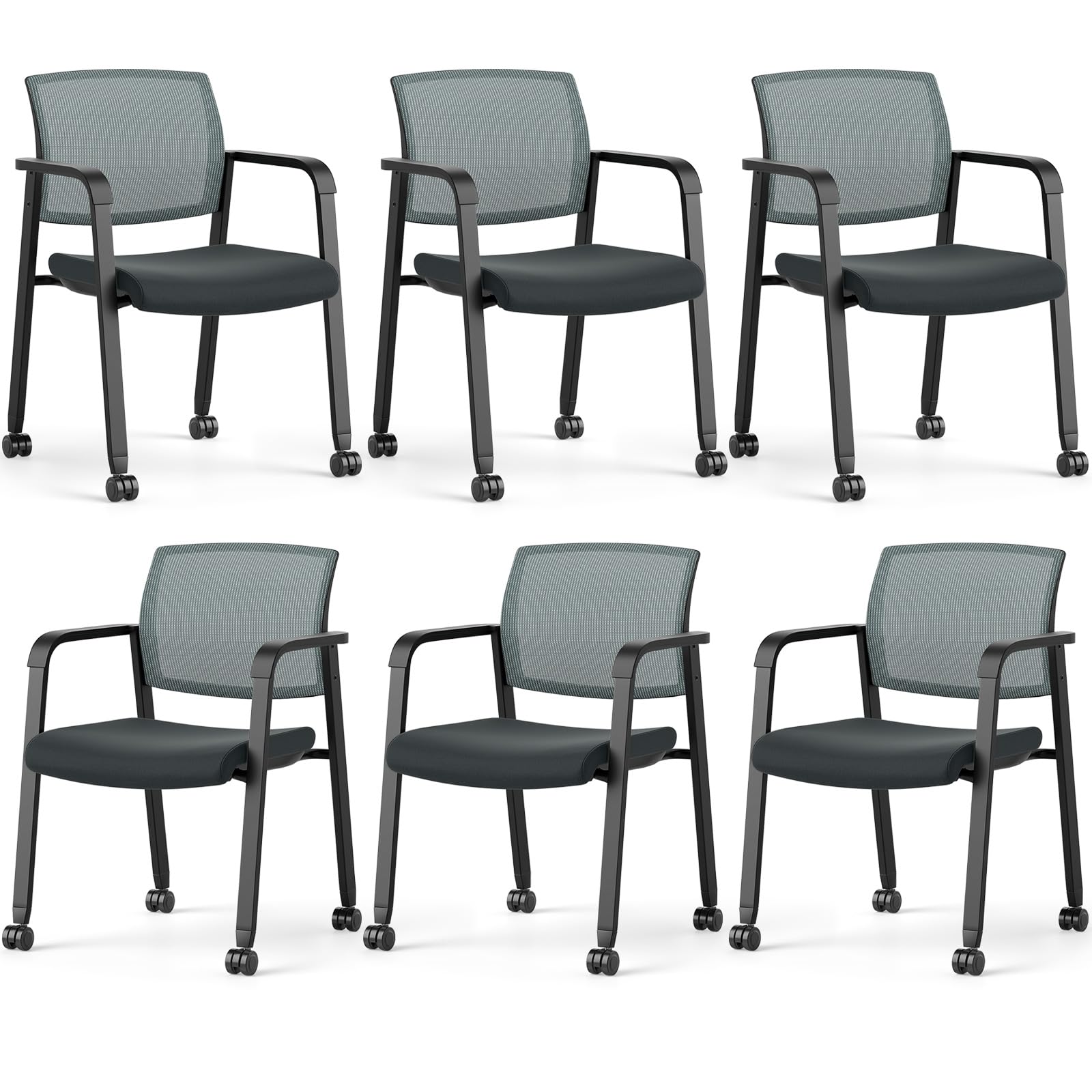 Tangkula Rolling Conference Room Chairs, Stackable Office Guest Mesh Chairs with Armrests and Wheels