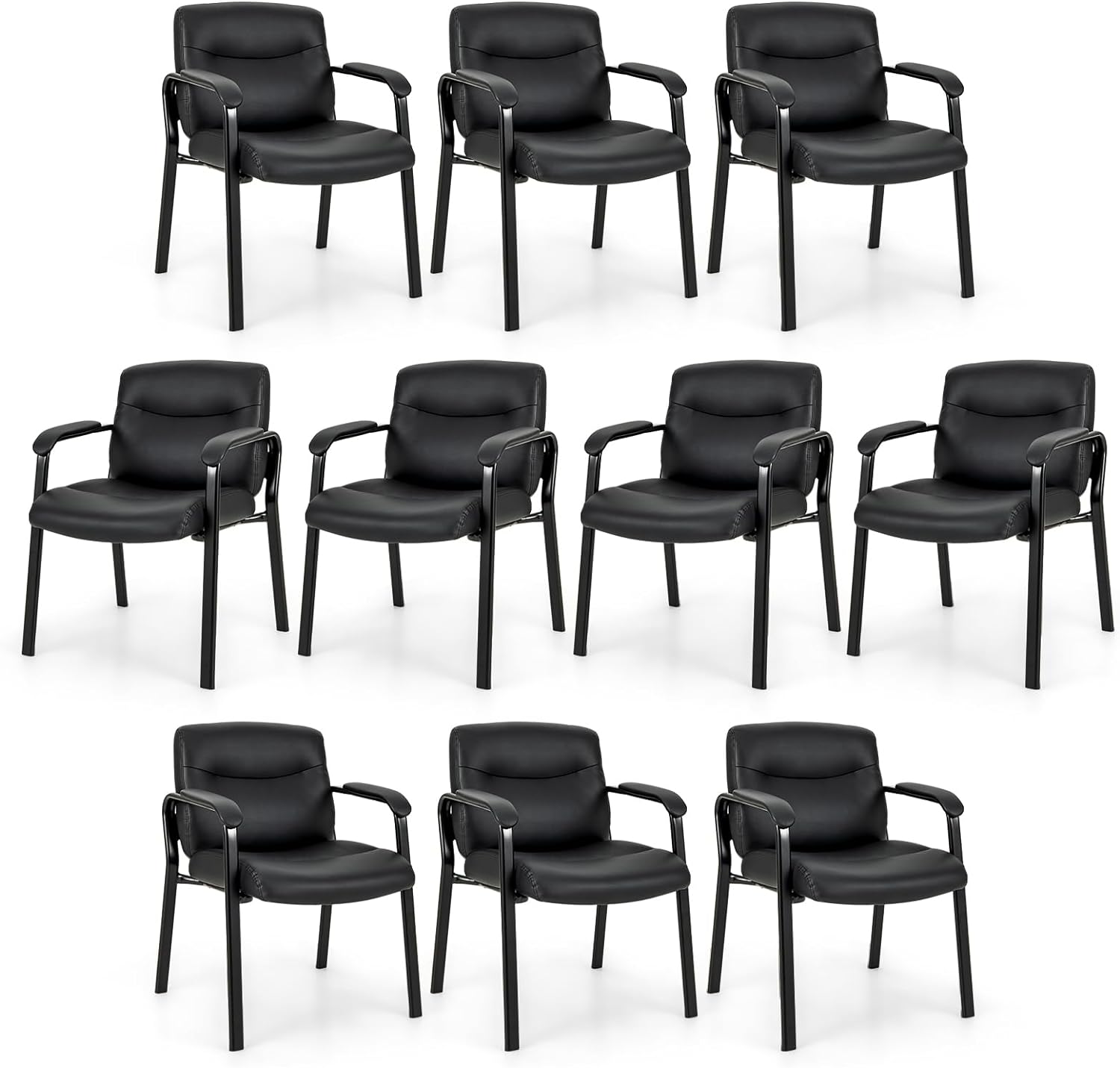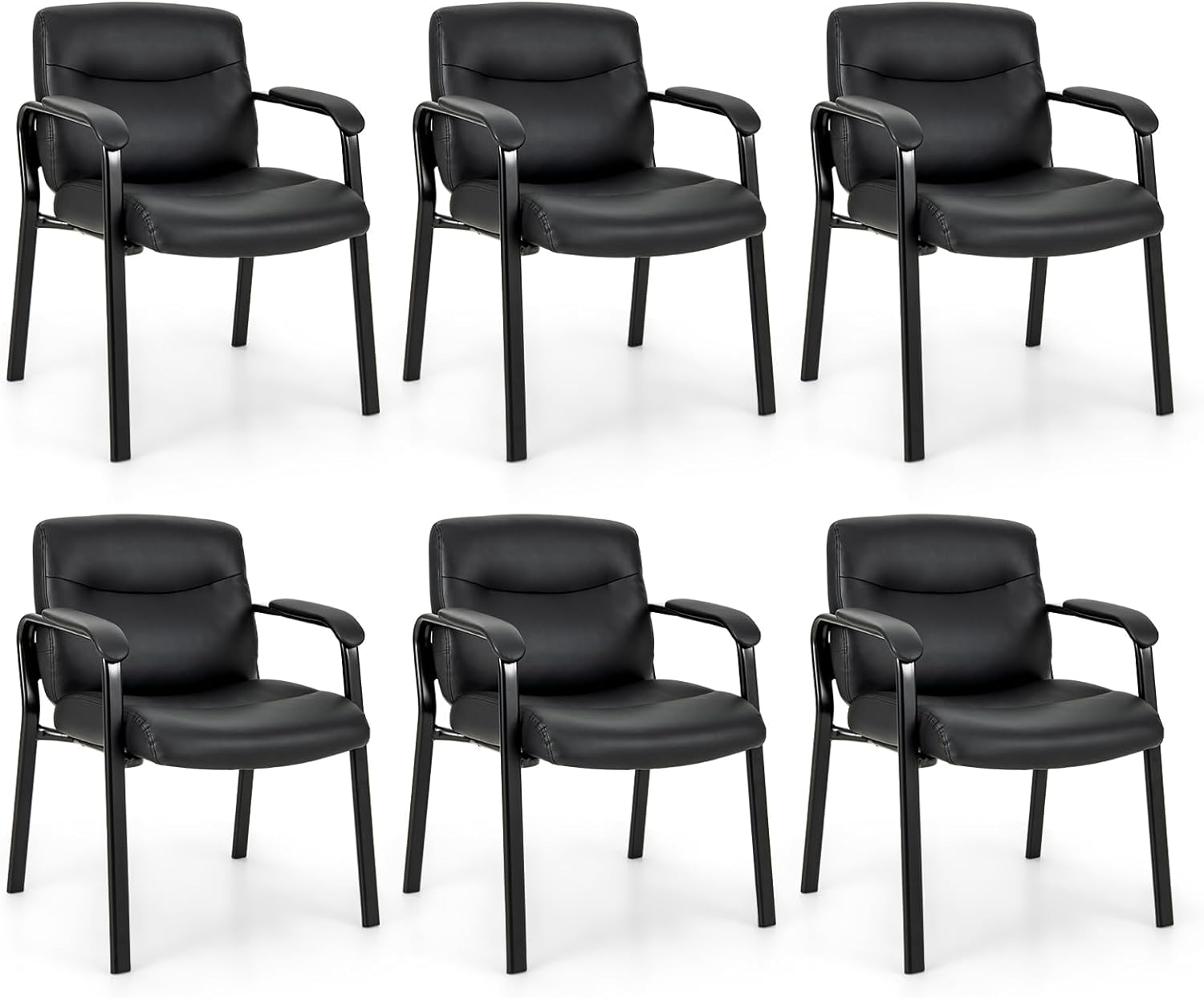 Tangkula Waiting Room Chairs, Upholstered PU Leather Conference Room Chairs with Padded Armrests, Black