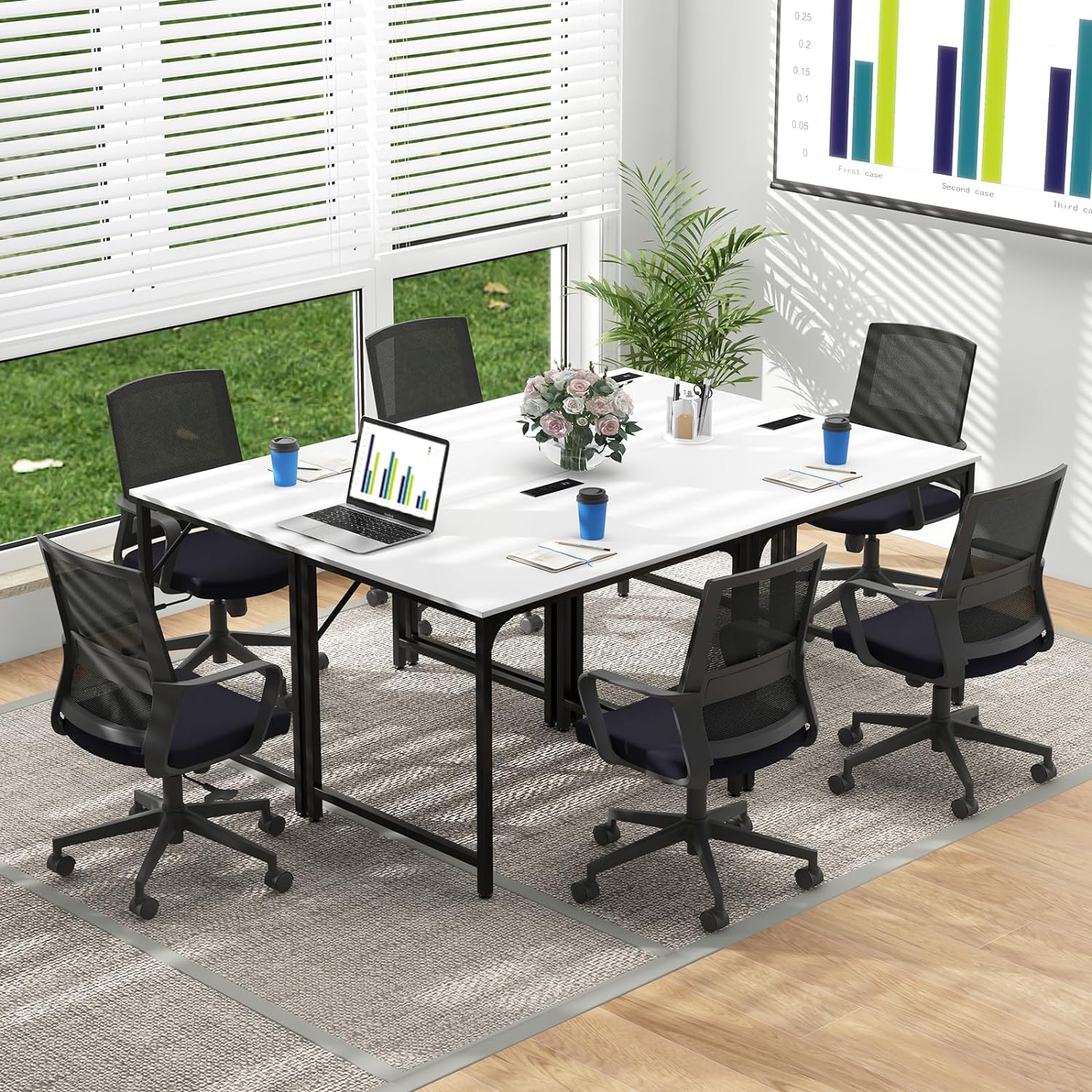 Tangkula Conference Table Set of 1/2/4/6, Modern Boardroom Desk with Storage Bag, Headphone Hook