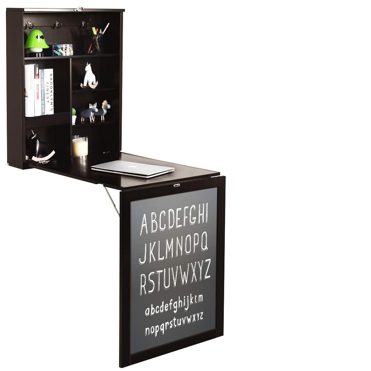 Tangkula Wall Mounted Desk, Floating Desk with Chalkboard