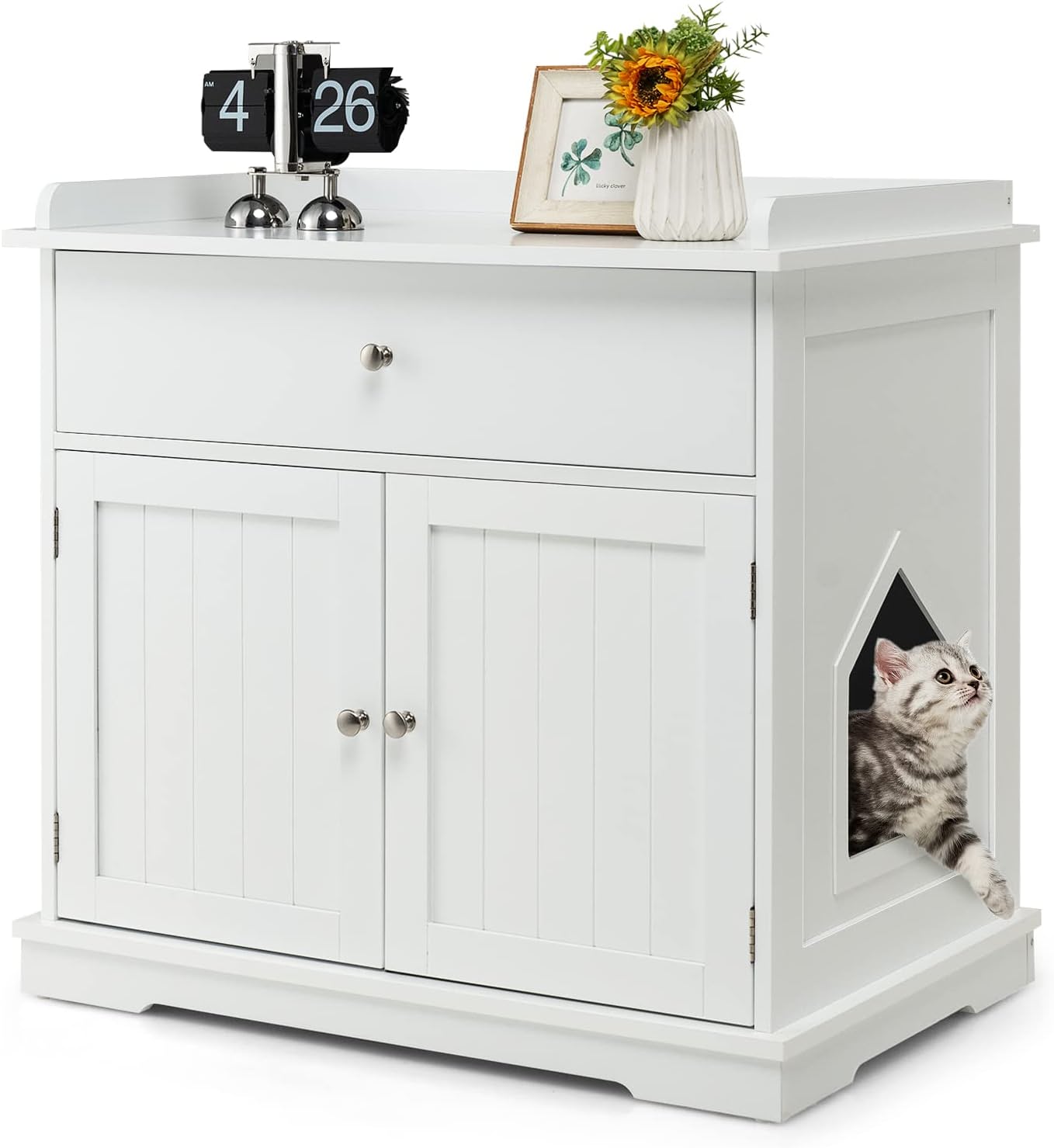 Tangkula Litter Box Enclosure, Cat Litter Box Furniture Hidden with Large Drawer, 2 Doors