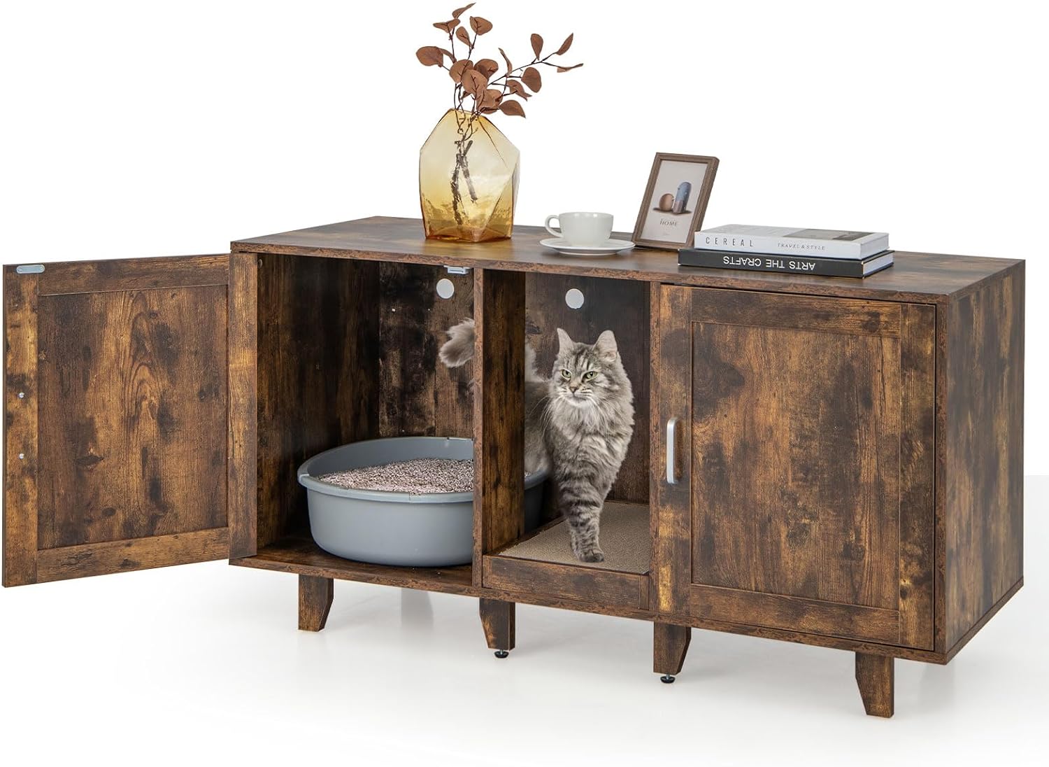 About this item Private Washroom: Featuring a large double-door cabinet, the cat washroom furniture provides an ideal space to conceal the cat litter box, thus your...