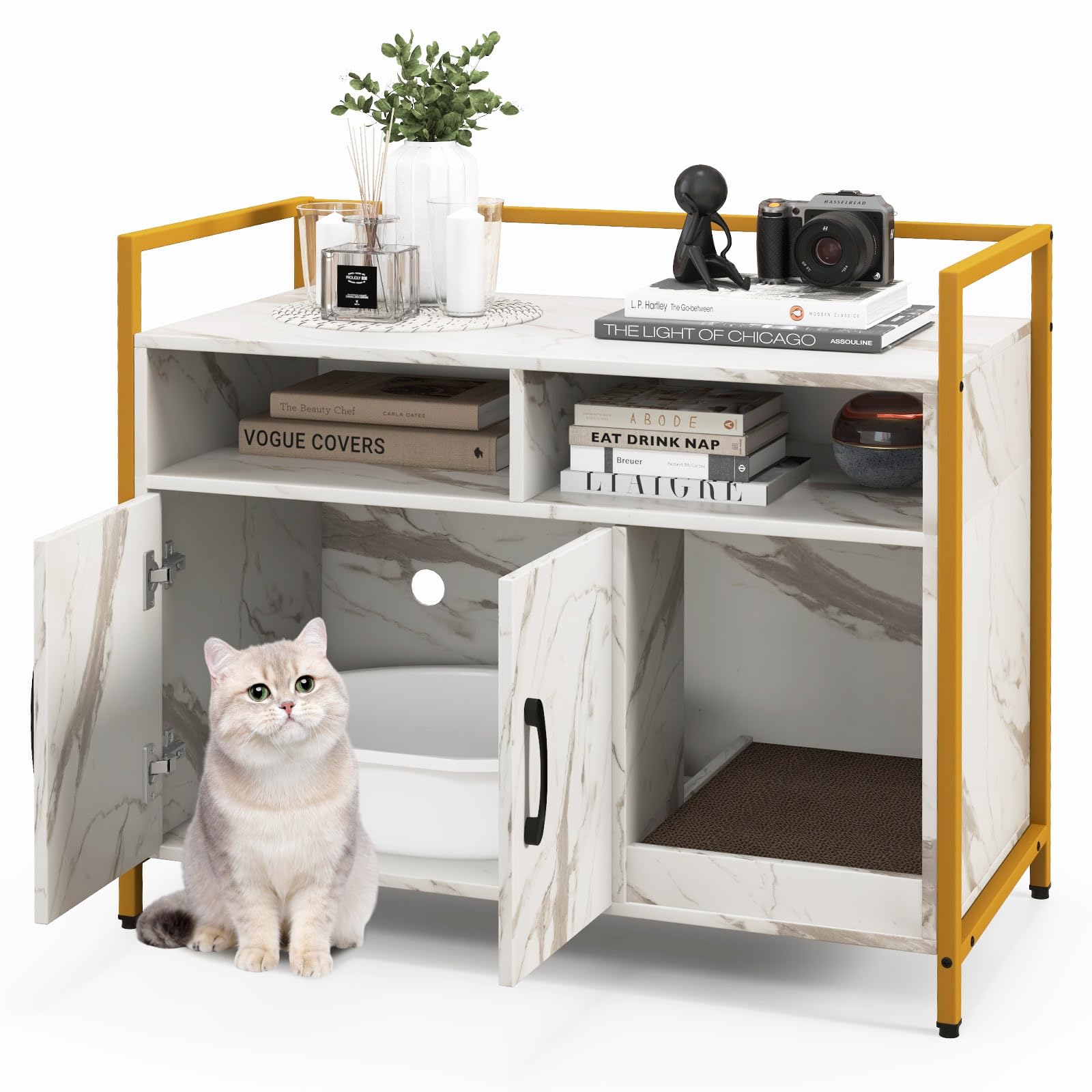 Tangkula Cat Litter Box Enclosure, Hidden Cat Washroom Cabinet with 2 Doors