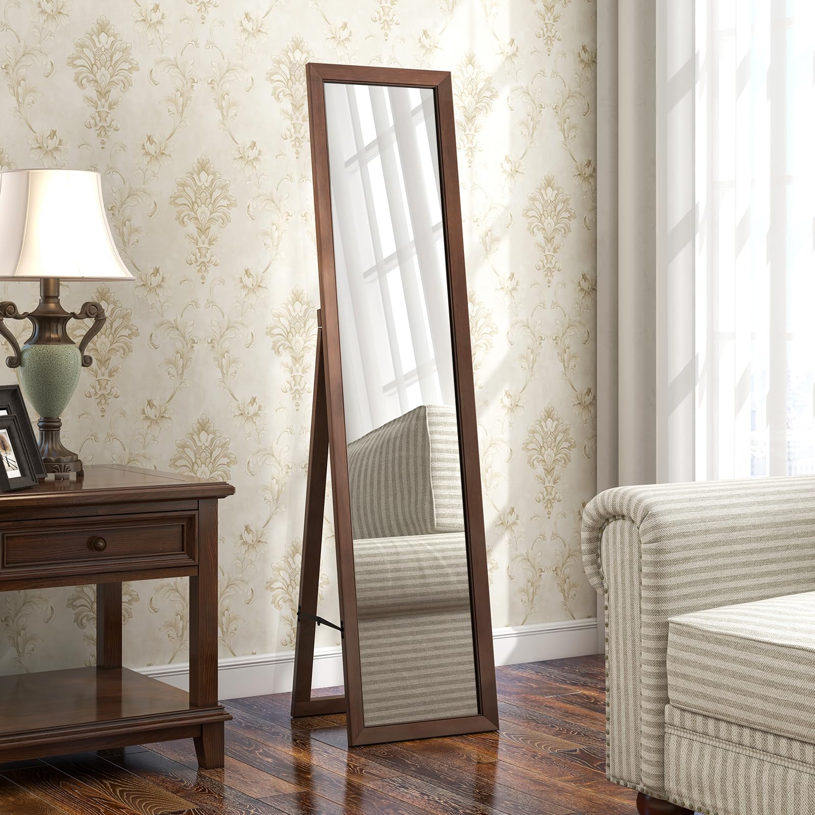 Tangkula Full Length Mirror with Stand, Solid Wood Frame Floor Mirror, Free Standing Full Body Mirror