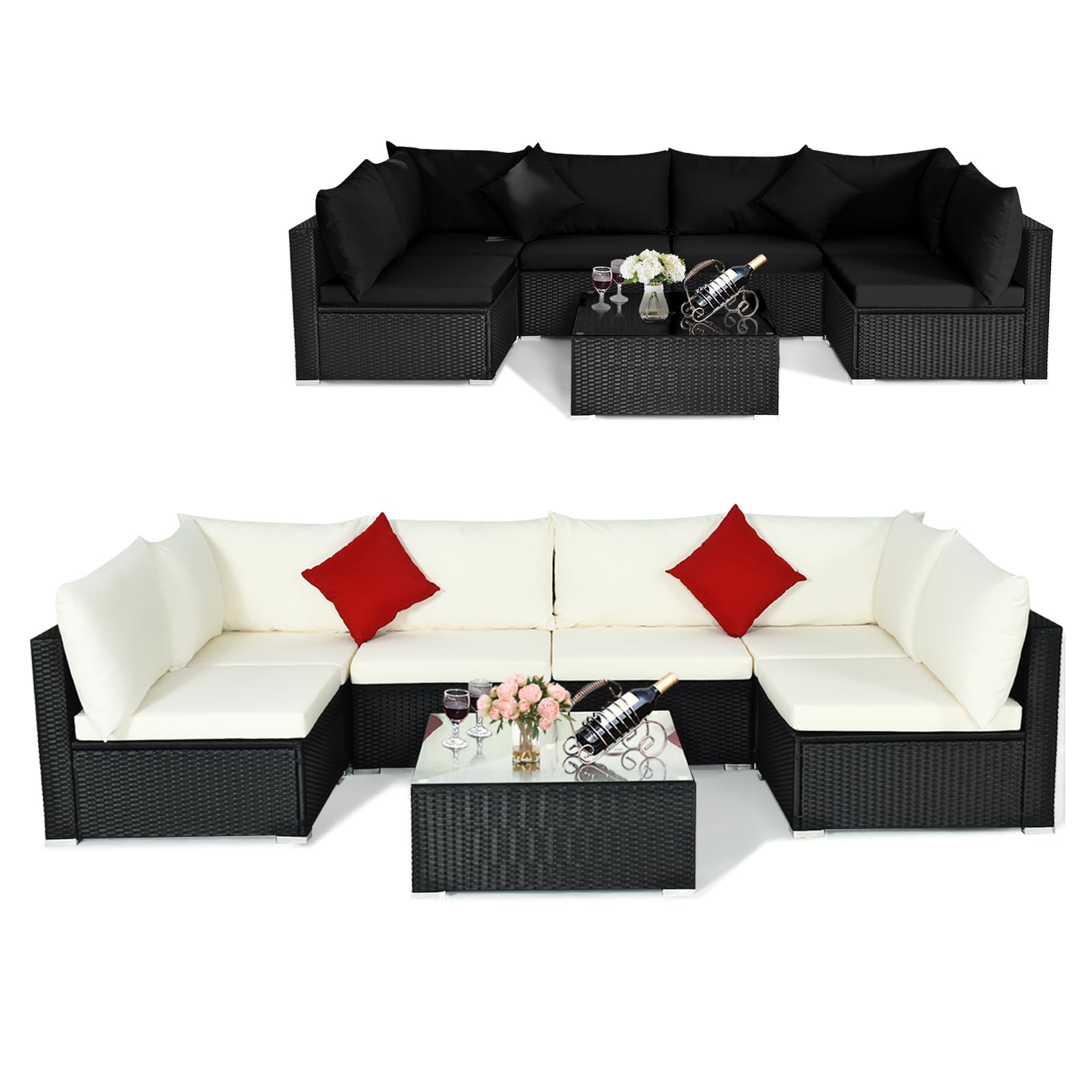 Tangkula 7 Piece Patio Furniture Set, Outdoor Sectional Sofa with 2 Pillows and Cushions