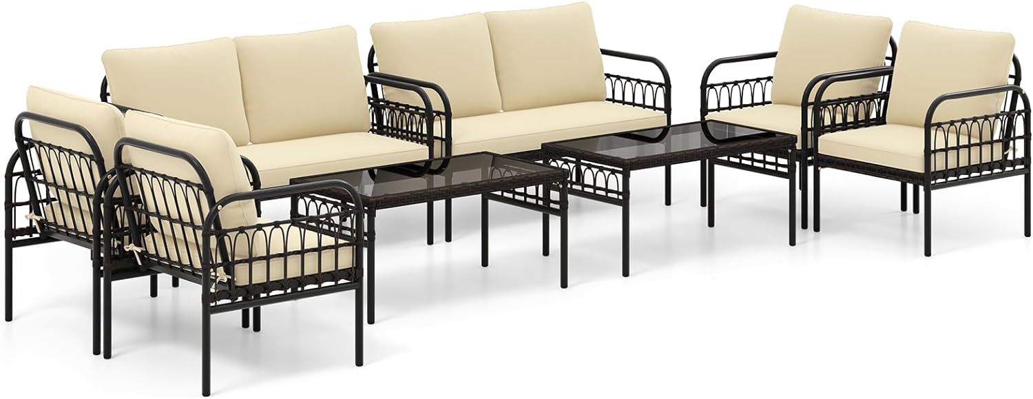 Tangkula 7 Piece Outdoor Conversation Set, Patiojoy Rattan Chair Set with 2 Coffee Tables & 2 Ottomans