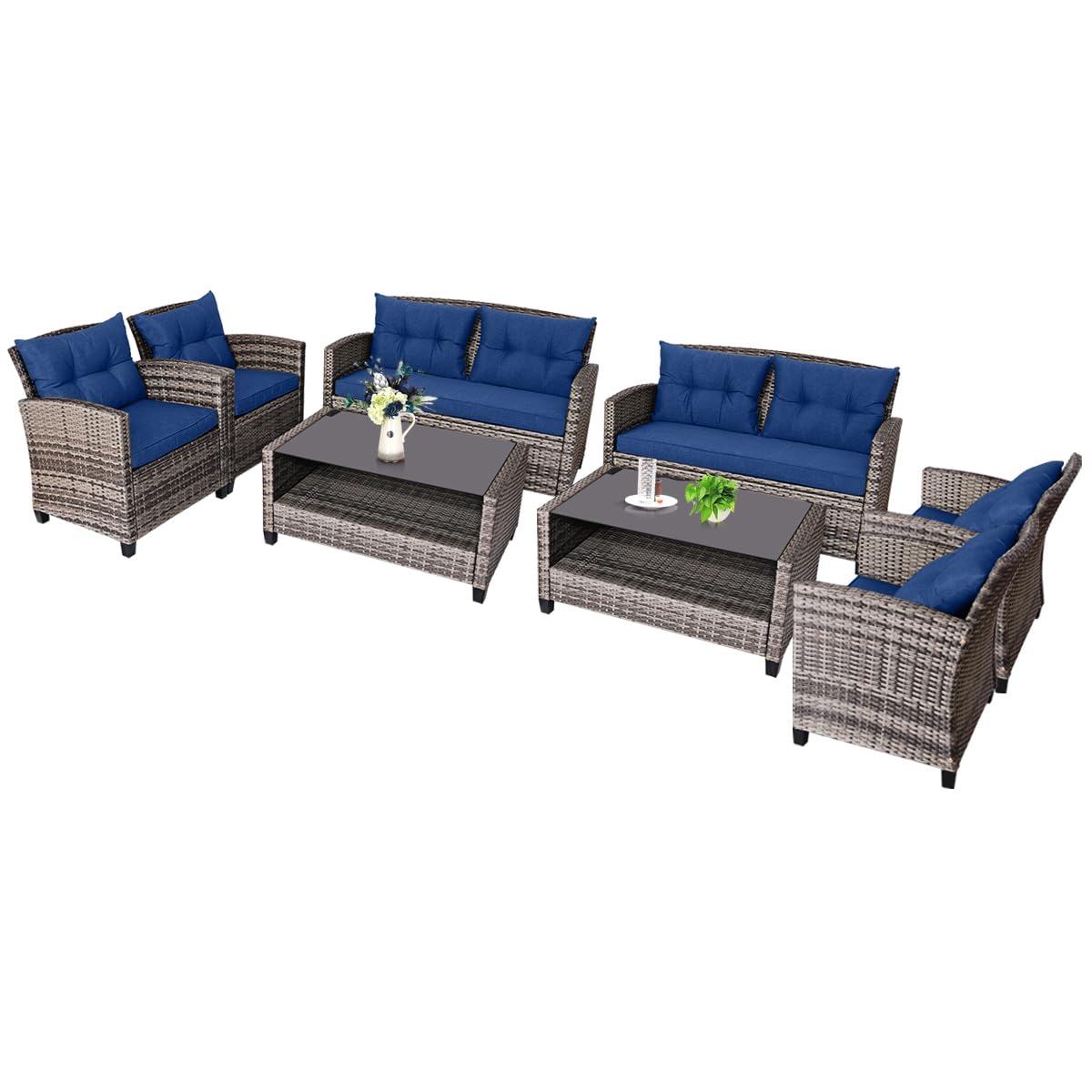 Tangkula 5 Piece Patio Furniture Set, Patiojoy Wicker Chair Set with Coffee Table & 2 Ottomans (Navy)
