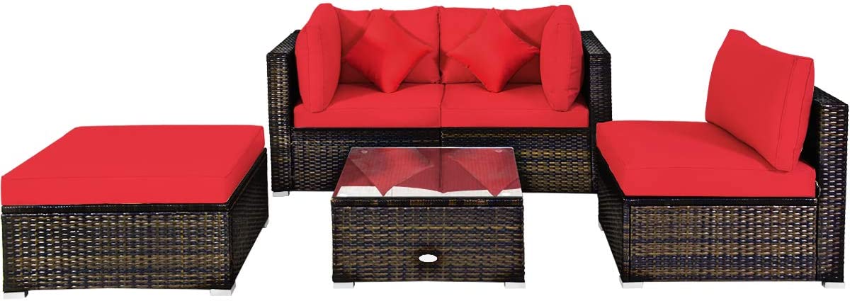 Tangkula 5 PCS Patio Rattan Furniture Set, Outdoor Sectional Rattan Sofa Set with Back & Seat Cushions