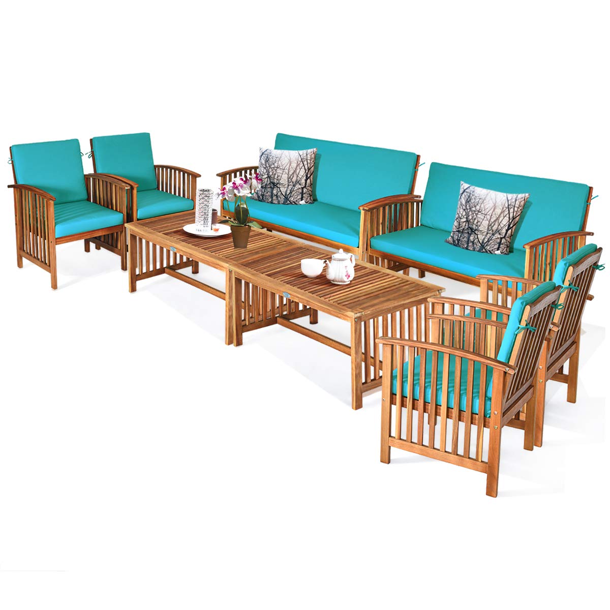 Tangkula Outdoo Wood Sofa Set w/Water Resistant Cushions, Padded Patio Seating Chat Set