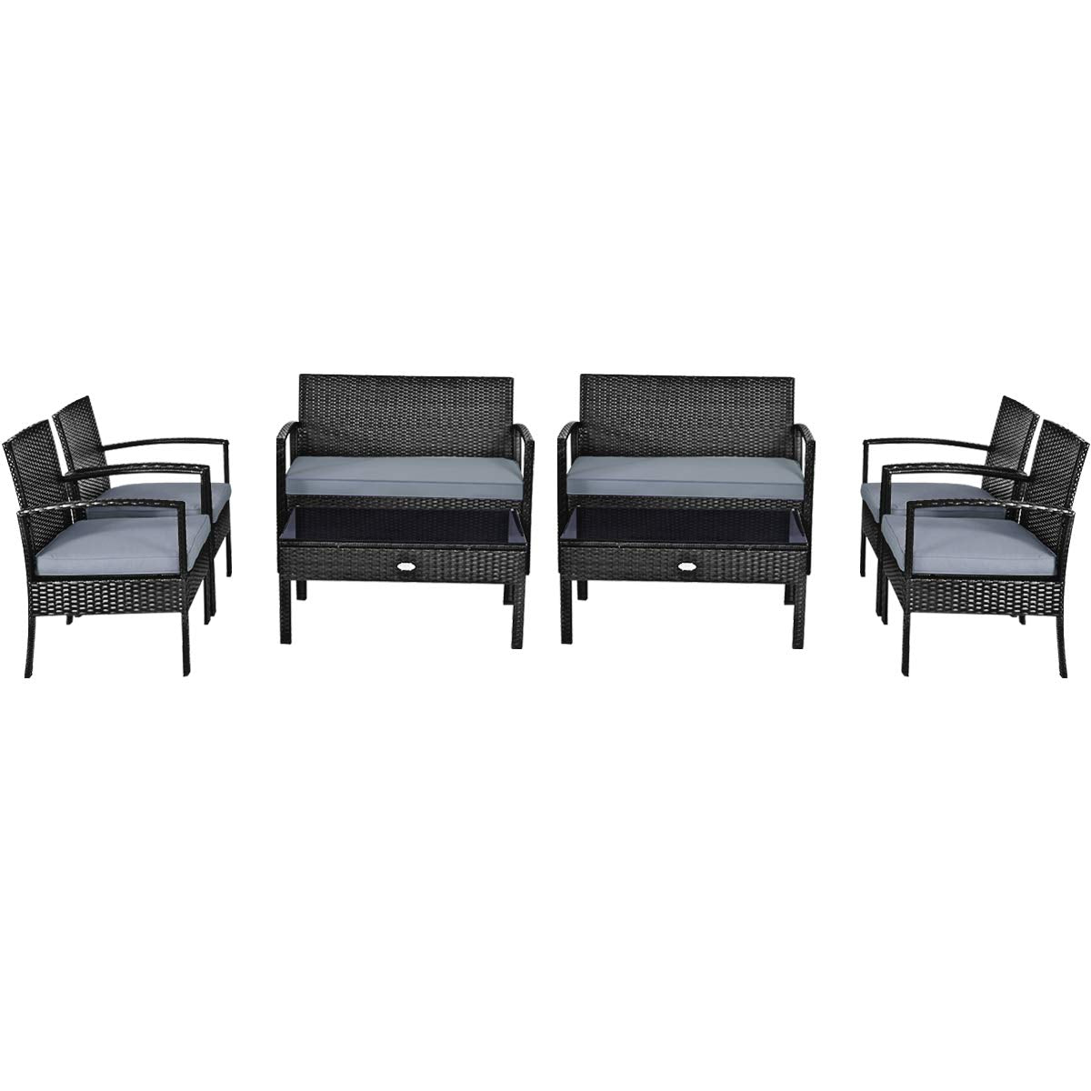 Tangkula Patio Furniture Set, Outdoor Wicker Conversation Set with Tempered Glass Coffee Table