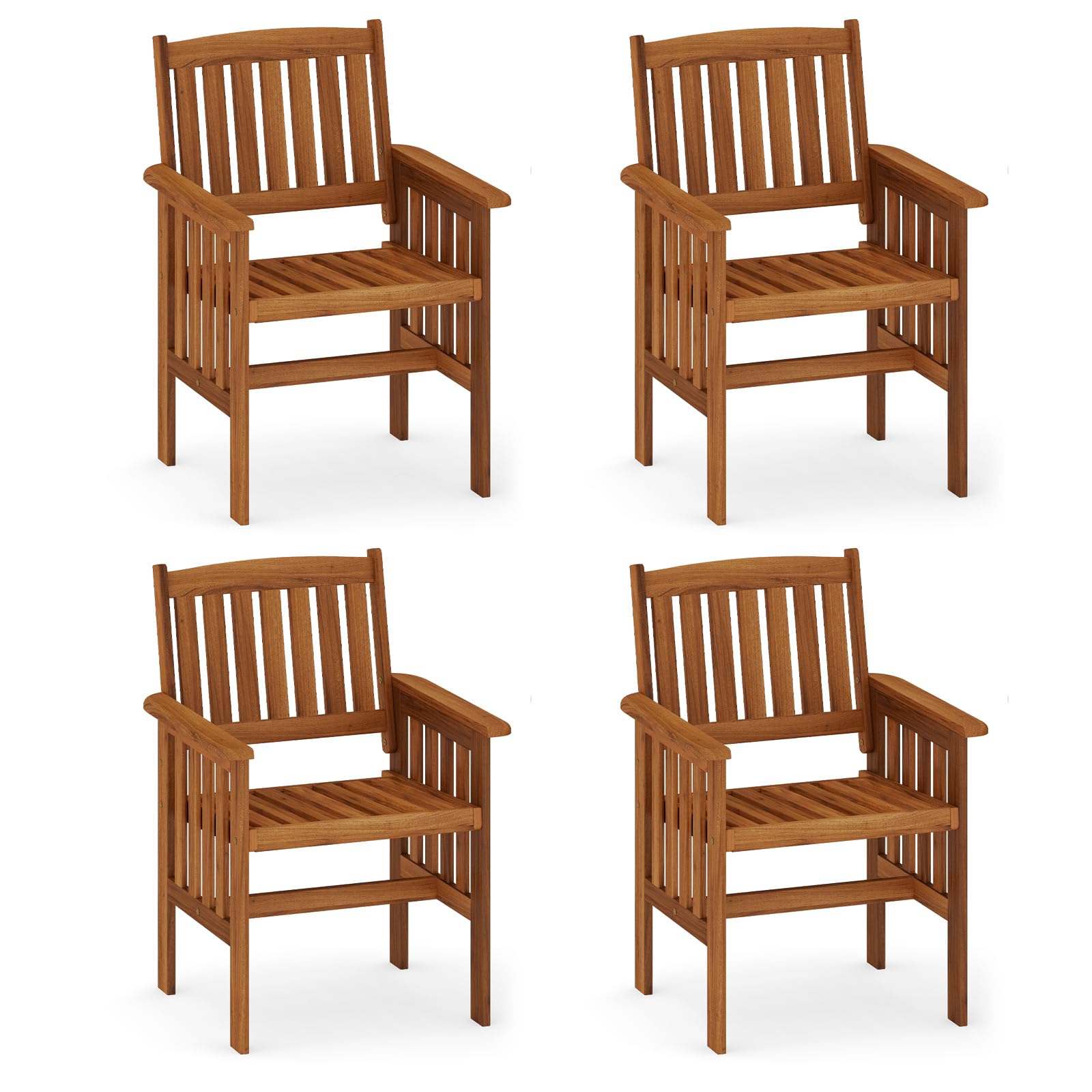 Tangkula Slatted Patio Heavy Duty Acacia Armchairs with Inclined Backrest